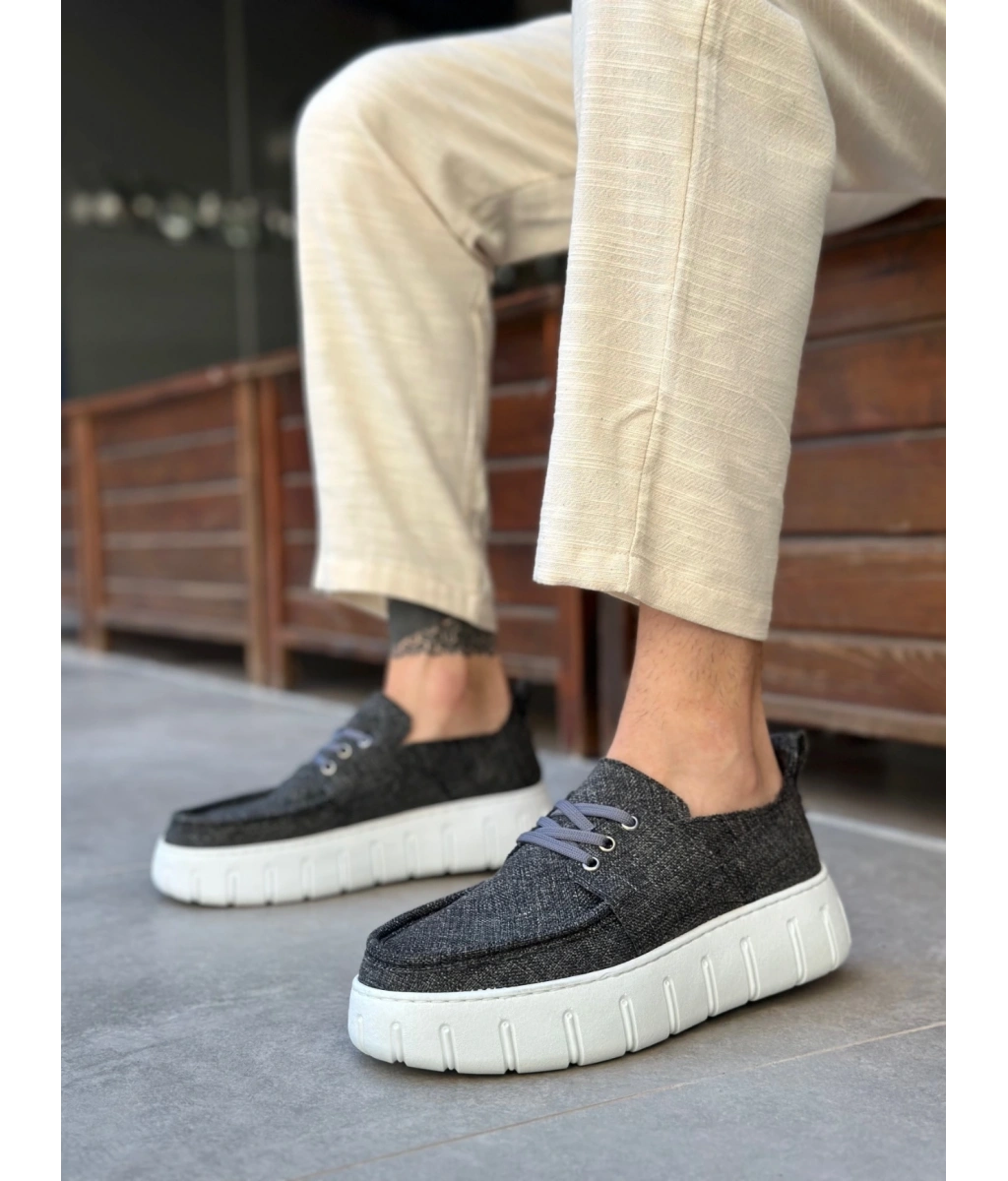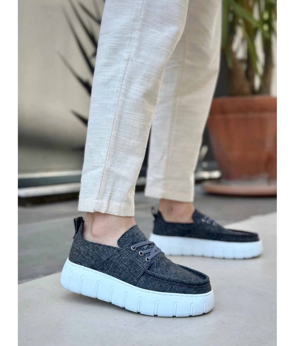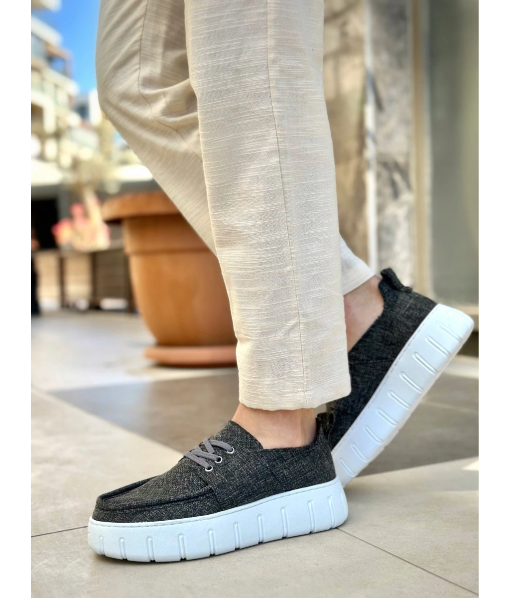 Shoecide Sb0676 Boa Gri Keten Yüksek Taban Erkek Yazlık Ayakkabı