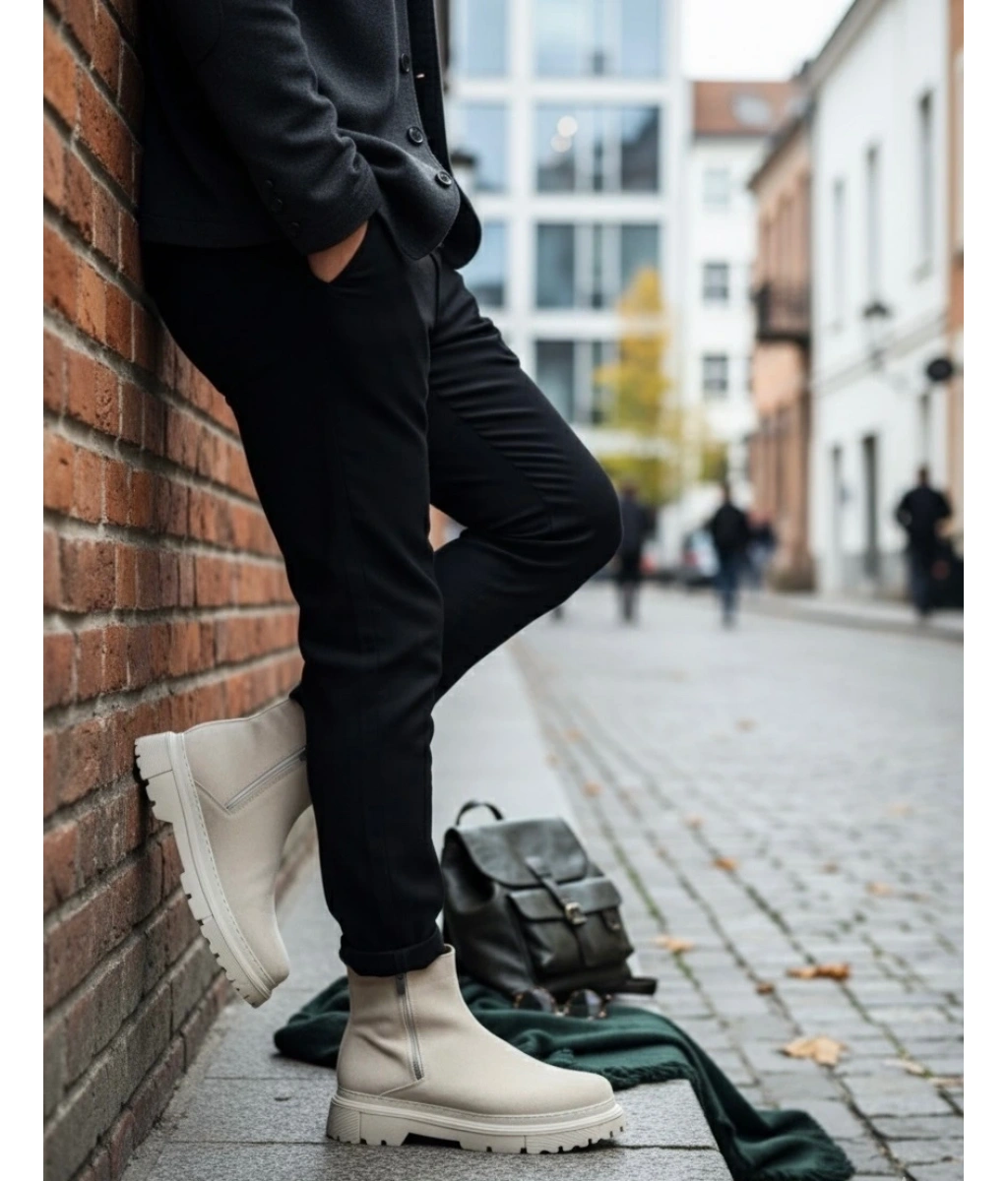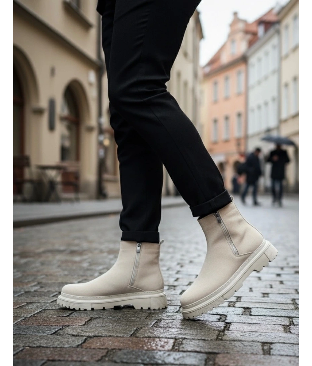 Shoecide Sb0777 Süet Bej Çift Fermuarlı Erkek Yarım Bilek Bot