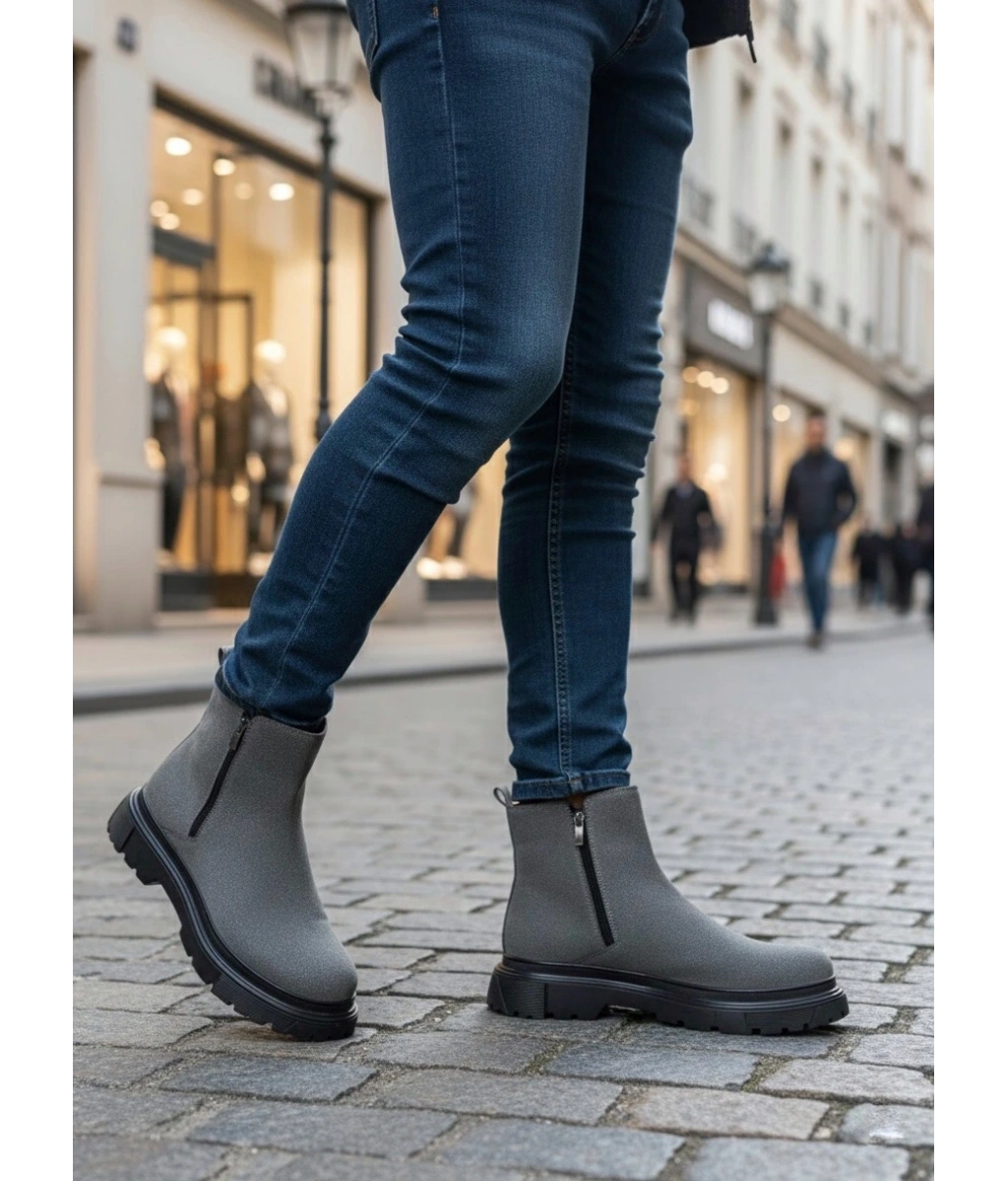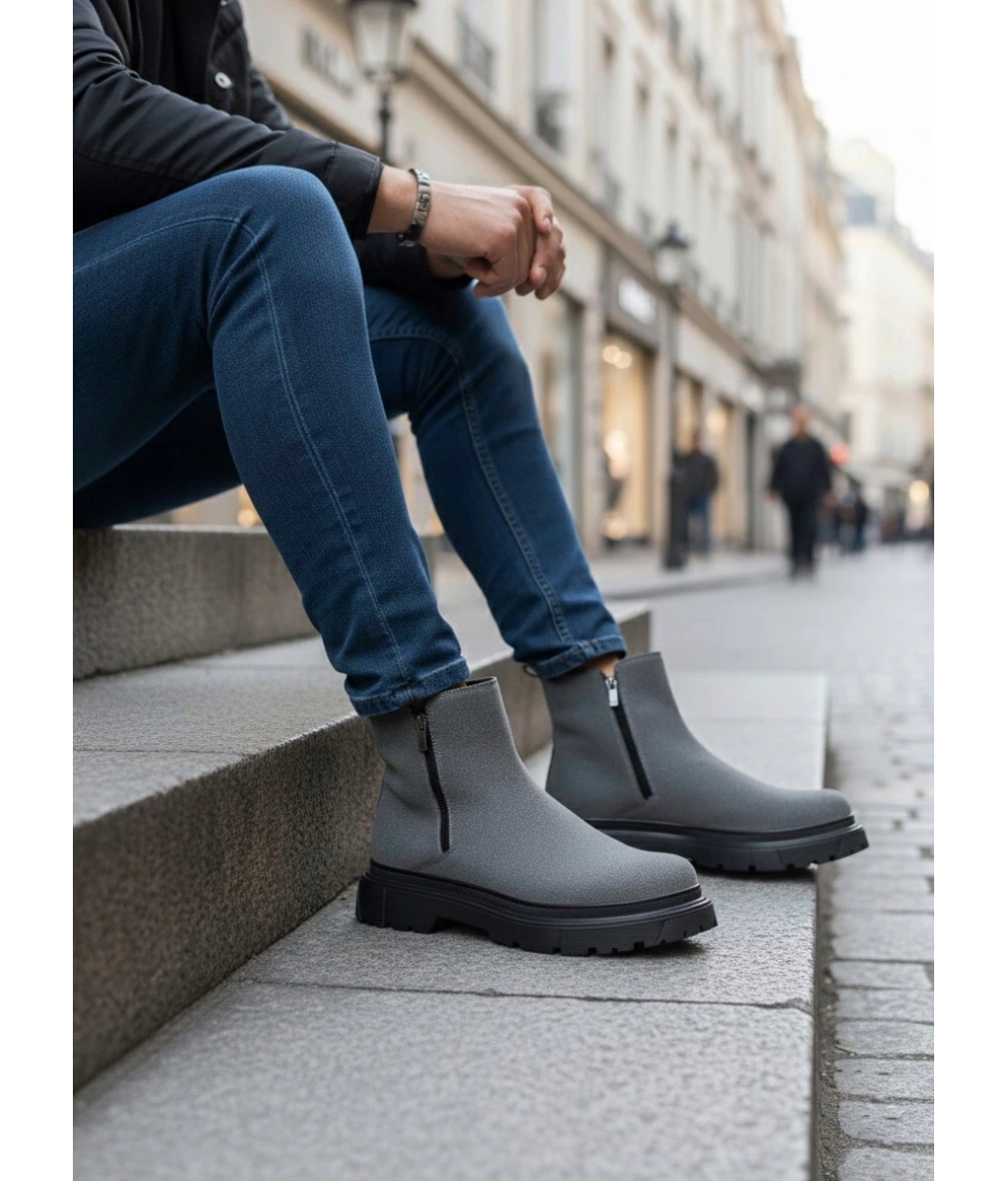 Shoecide Sb0777 Süet Füme Çift Fermuarlı Erkek Yarım Bilek Bot
