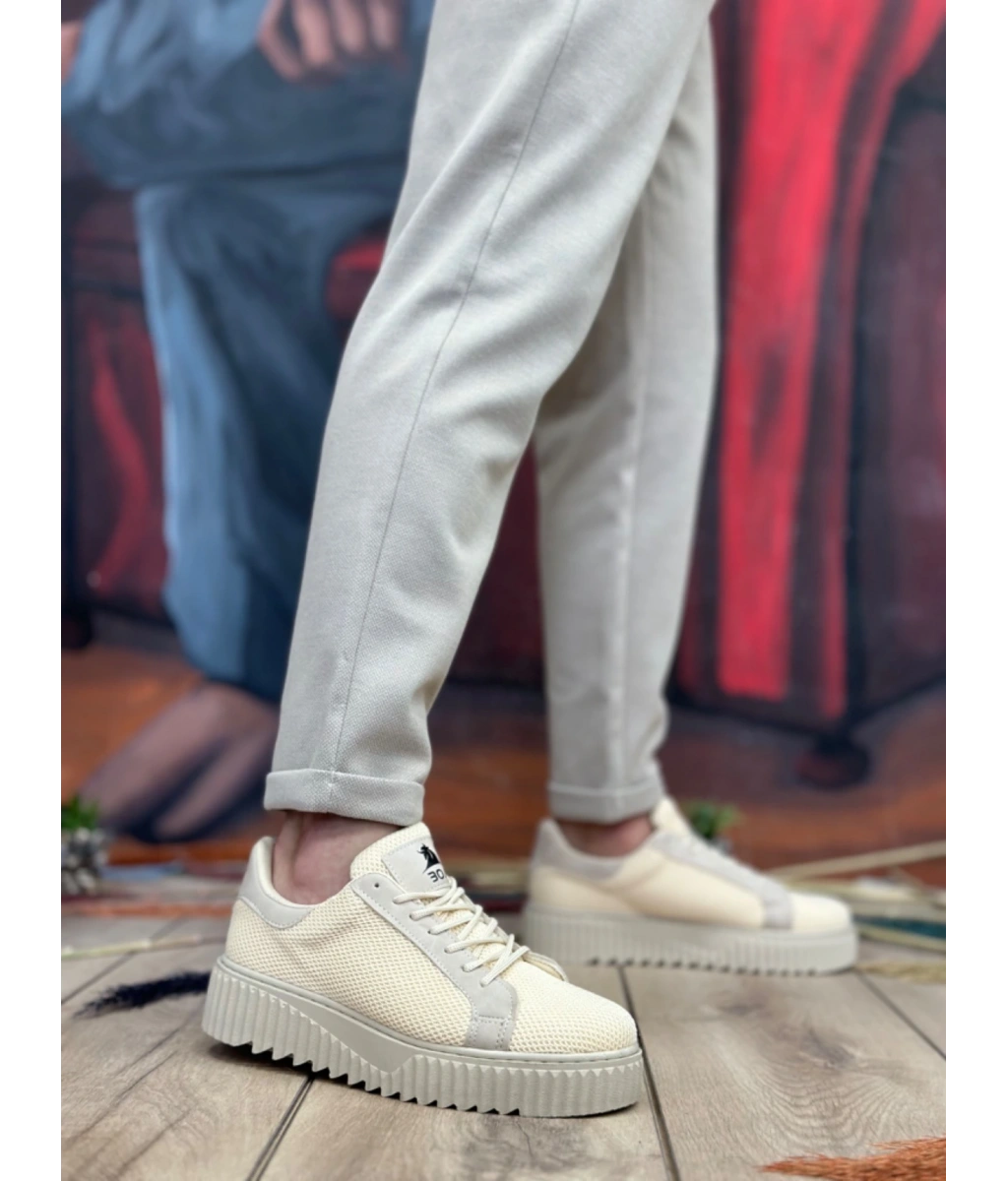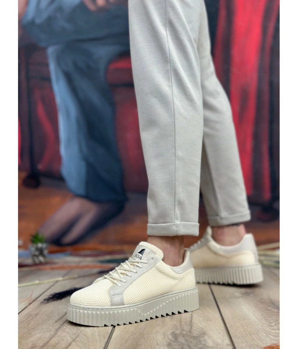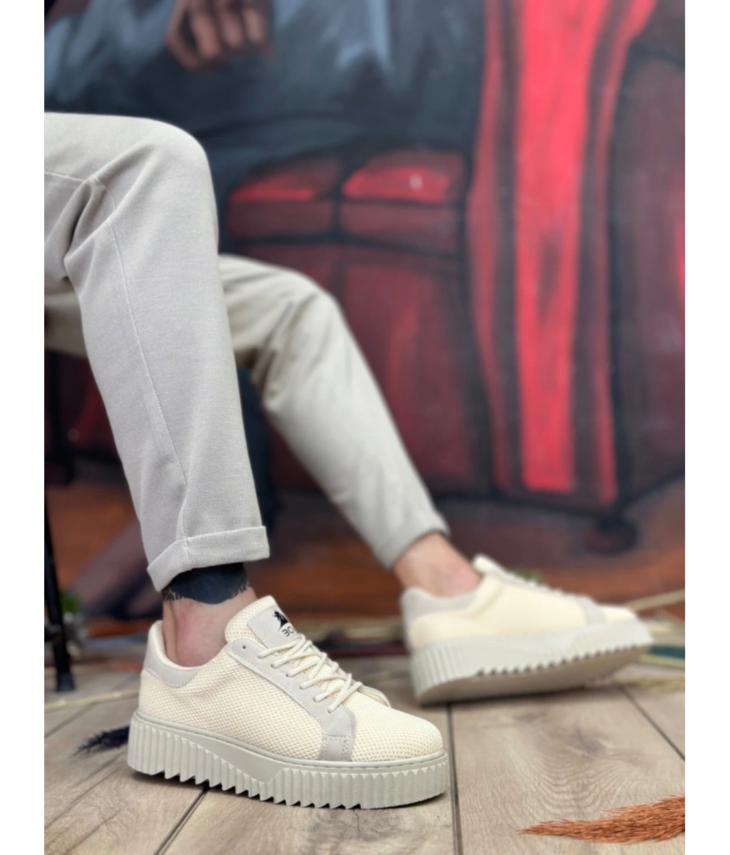 Shoecide Sb0803 Boa Yüksek Taban Triko Krem Erkek Ayakkabı