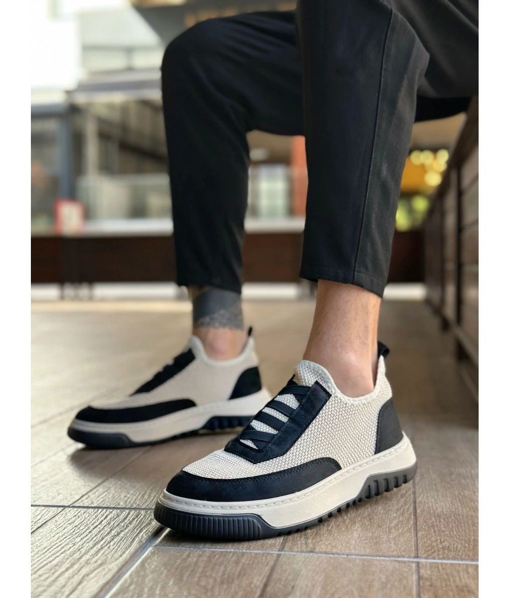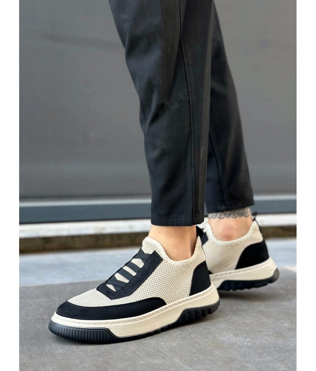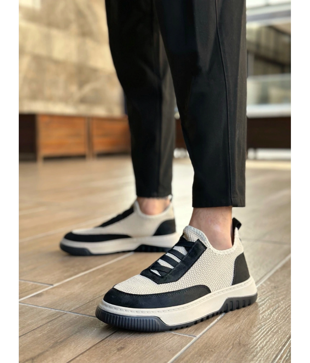 Shoecide Sb0911 Özel Örme Triko Deri Tozu Detaylı Bej Siyah Günlük Spor Ayakkabı