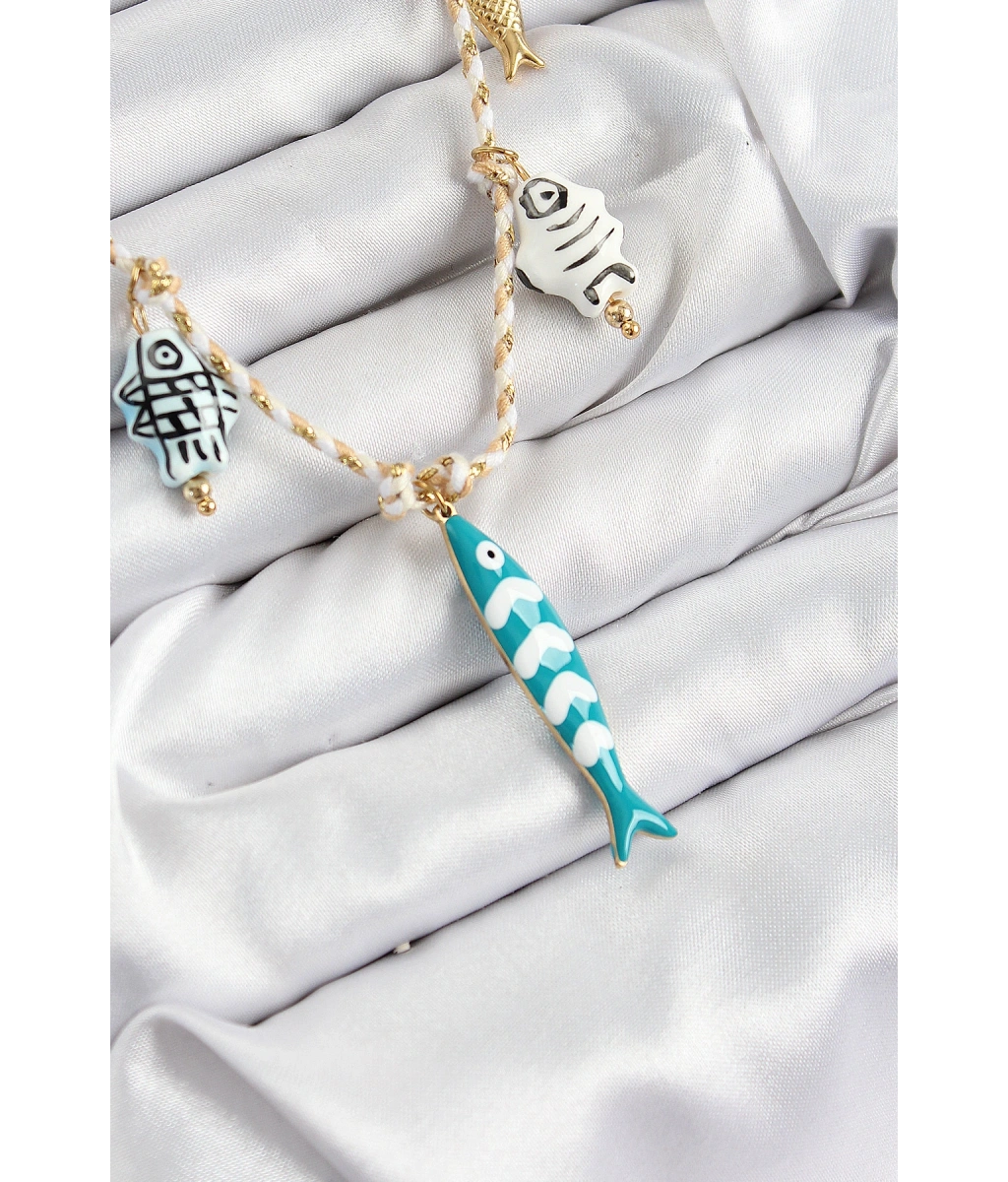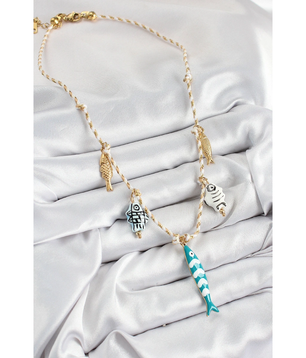 Shoecide Seramik Motifli Balık Figürlü Model Krem İp Kadın Kolye