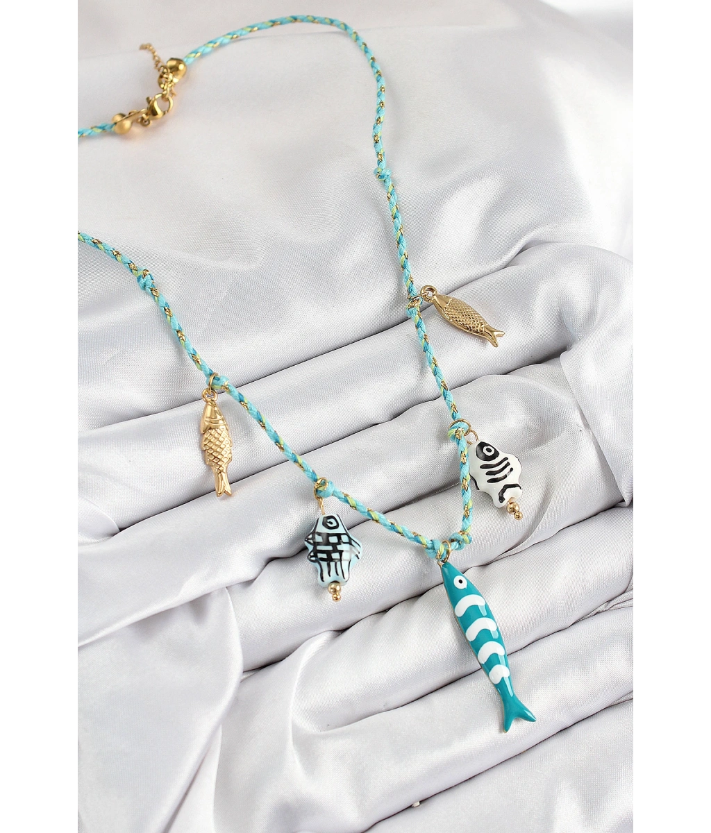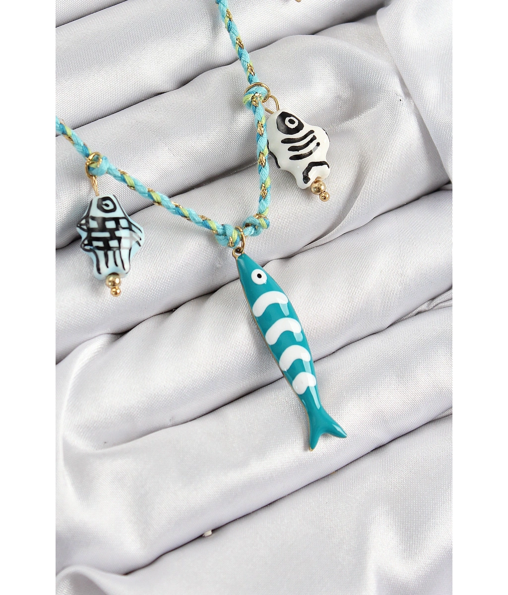 Shoecide Seramik Motifli Balık Figürlü Model Mavi İp Kadın Kolye