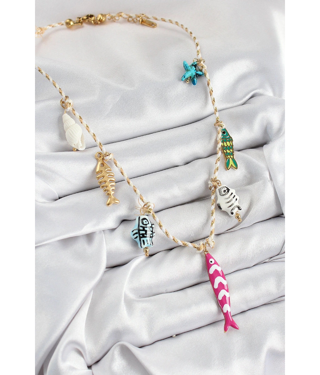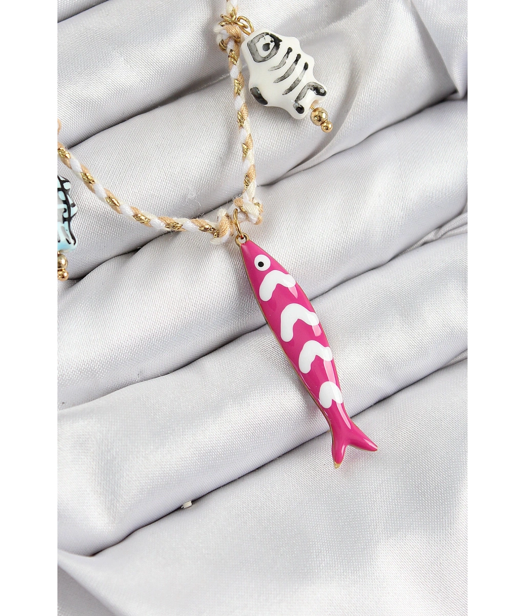 Shoecide Seramik Motifli Pembe Balık Figürlü Model Krem İp Kadın Kolye