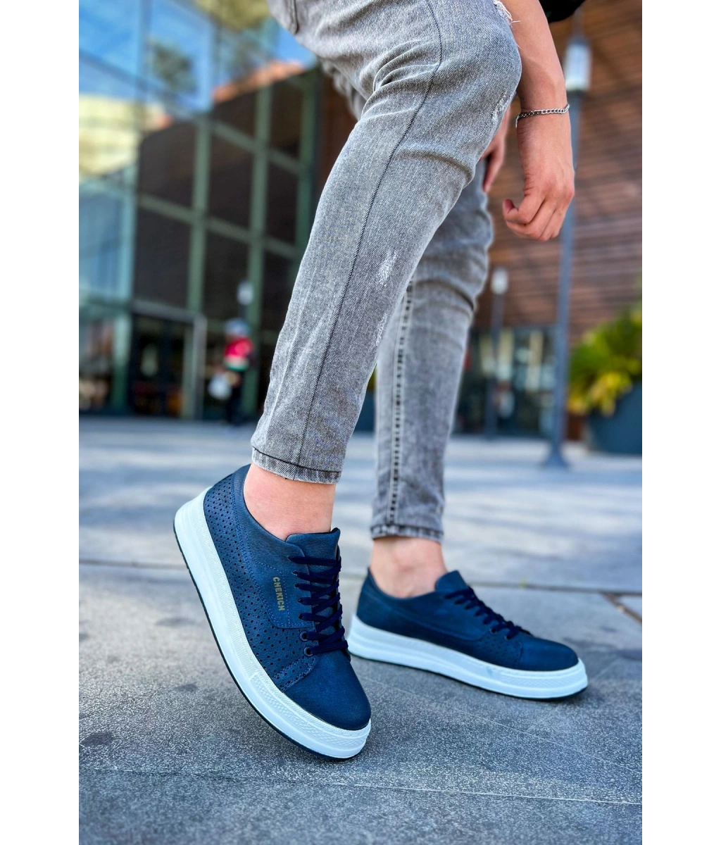 Shoecide Sho043 Bağcıklı Delikli Desen Yüksek Taban Cbt Cowien Erkek Ayakkabi Lacıvert