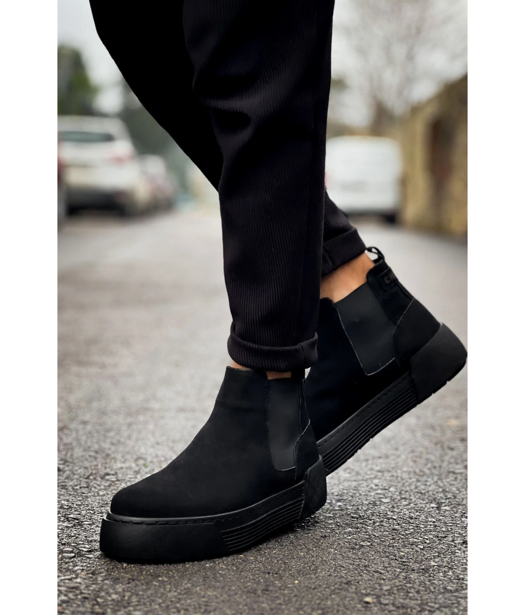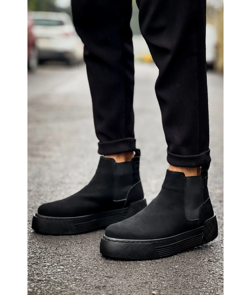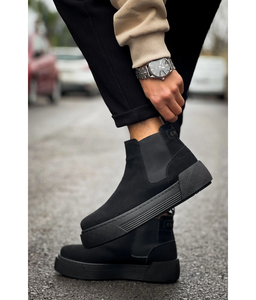 Shoecide Kb-0994 Siyah Süet Siyah Yüksek Taban Erkek Bilek Bot