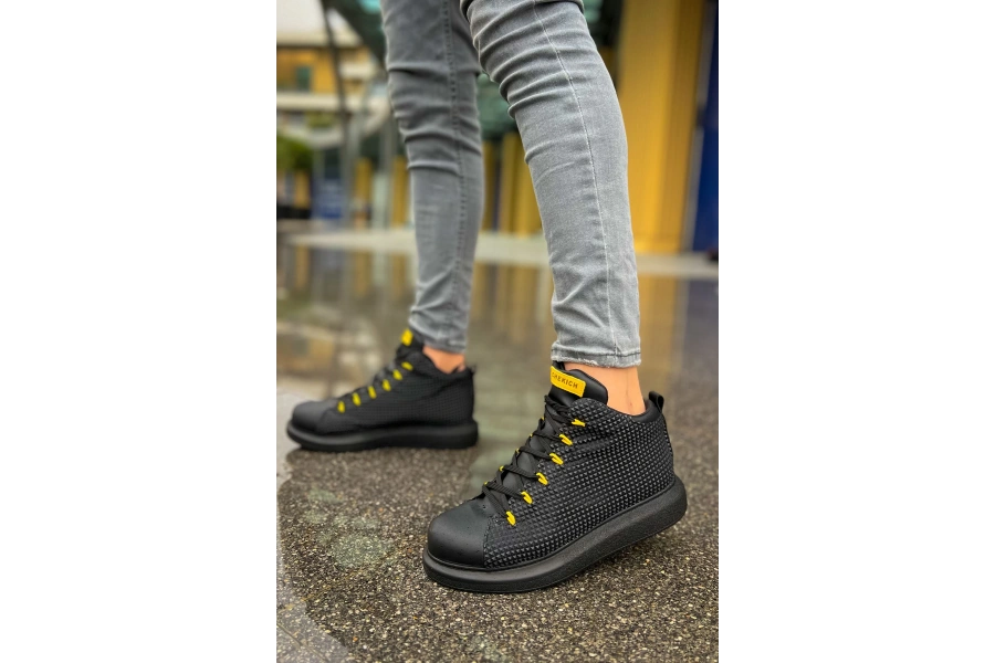 Shoecide Sho111 Bağcıklı Özel Tasarım Gst Milano Erkek Bot Sıyah - Sarı