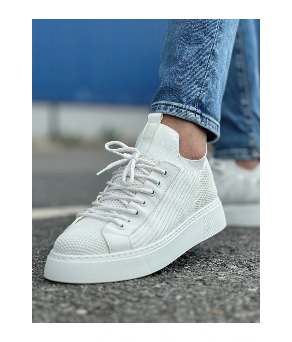 Shoecide Sho2423 Bağcıklı Yüksek Taban Tbt Erkek Ayakkabı Beyaz