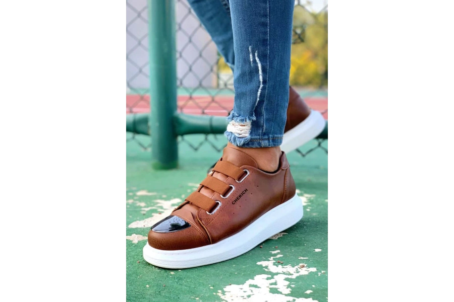 Shoecide Sb0244 İçi Dışı Hakiki Deri Bantlı Rahat Taban Casual Kahverengi Erkek Ayakkabı