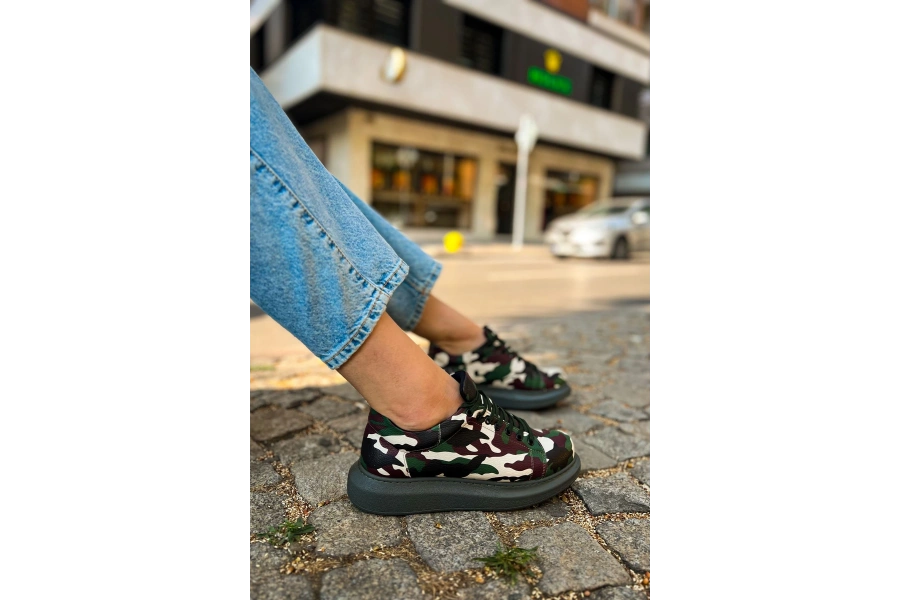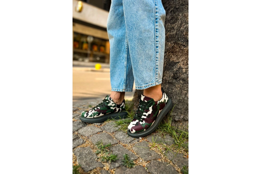 Shoecide Sho252 Rrt Bağcıklı Yüksek Taban Printed Erkek Ayakkabı 306 Yesıl Kamuflaj