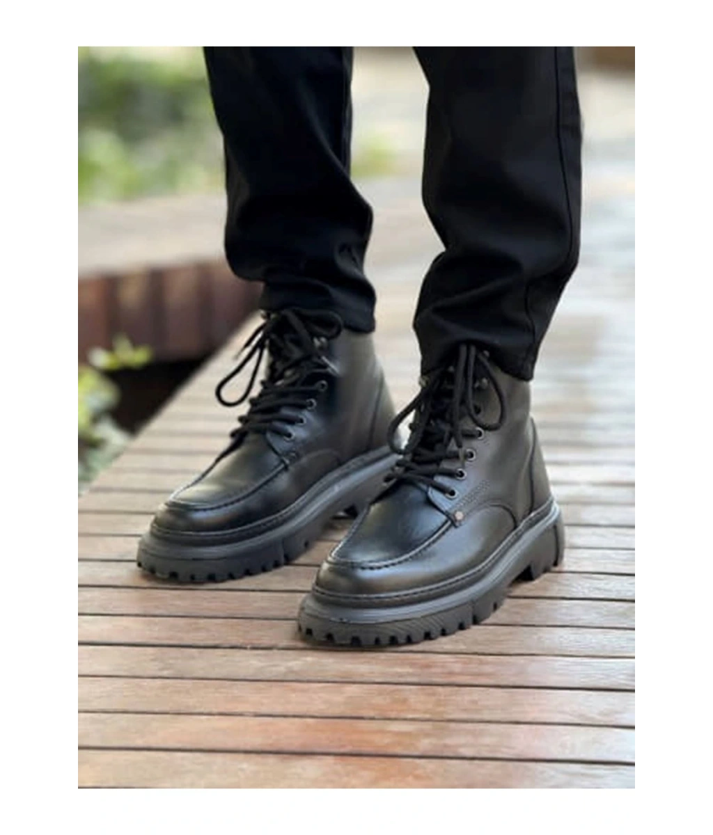 Shoecide Sb0713 Bağcıklı Yüksek Siyah Taban Erkek Tarz Spor Bot
