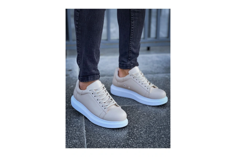 Shoecide Sho257 Bağcıklı Yüksek Taban Cbt Estrella Erkek Ayakkabı Bej