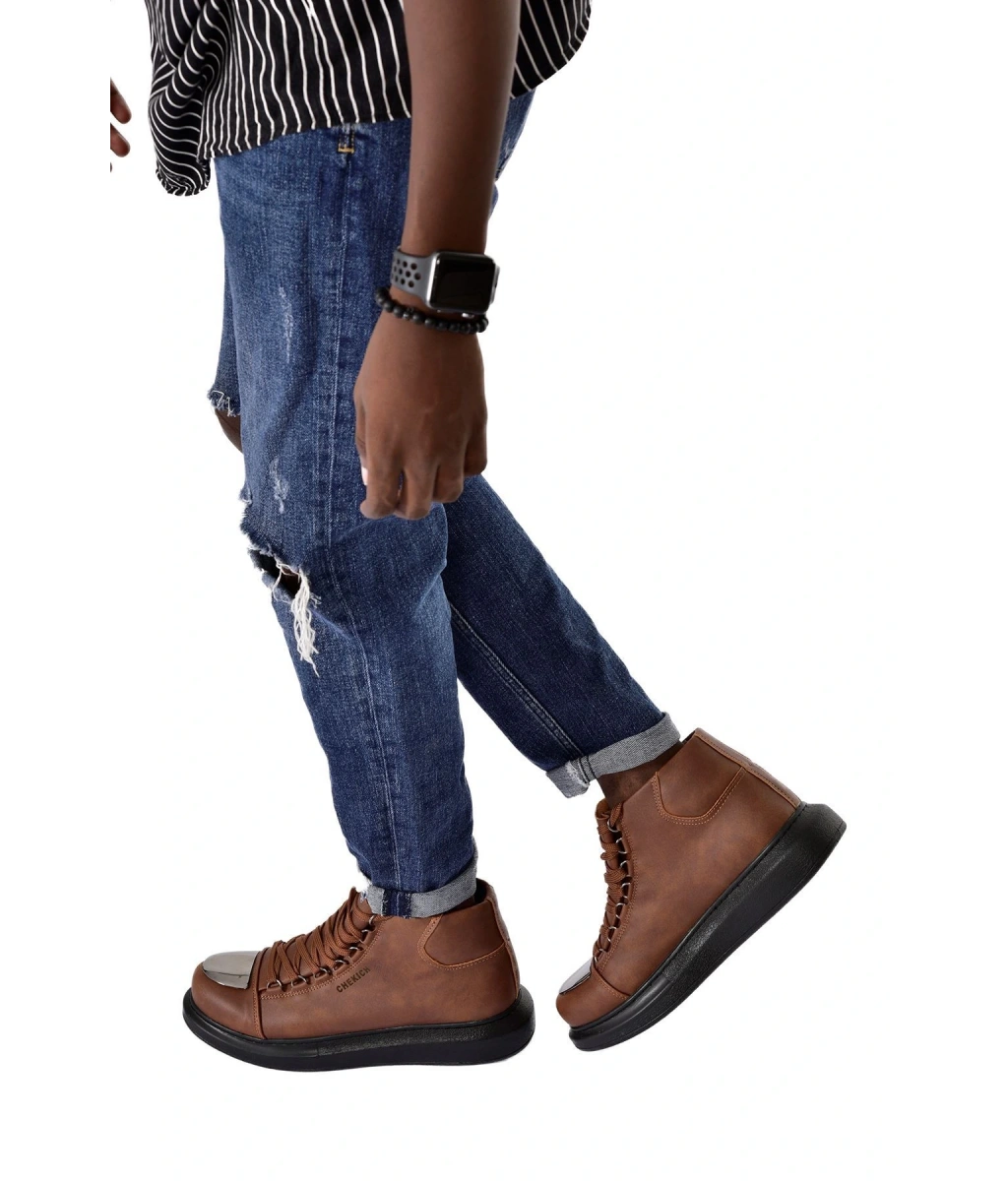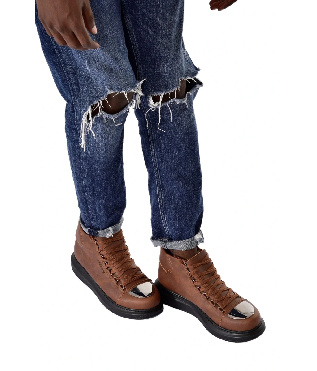 Shoecide Sb0550 İçi Kürklü Bağcıklı Taba Krem Taban Erkek Tarz Spor Bot