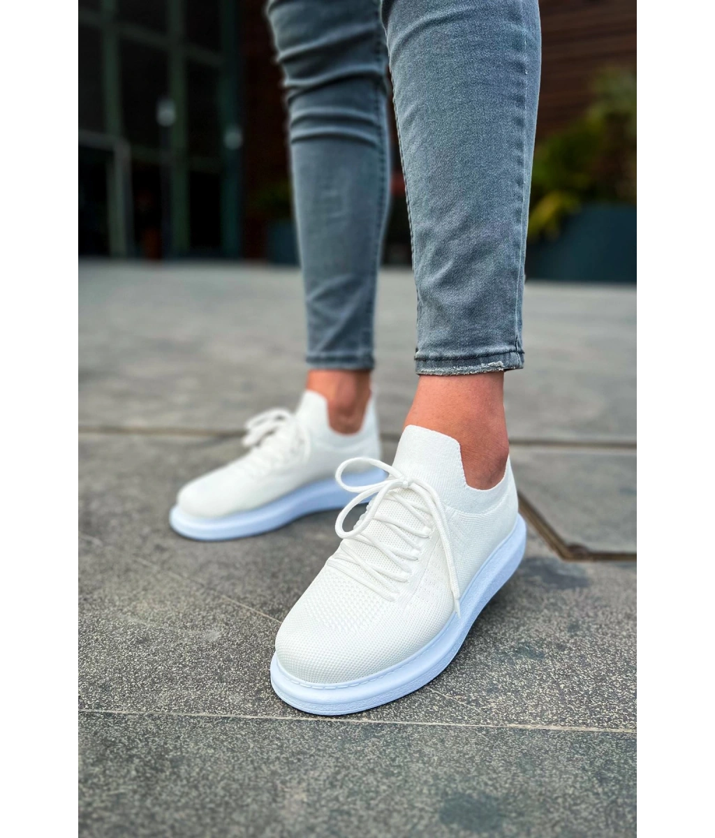 Shoecide Sho307 Bağcıklı Yüksek Taban Rt Tricot Erkek Ayakkabı Beyaz