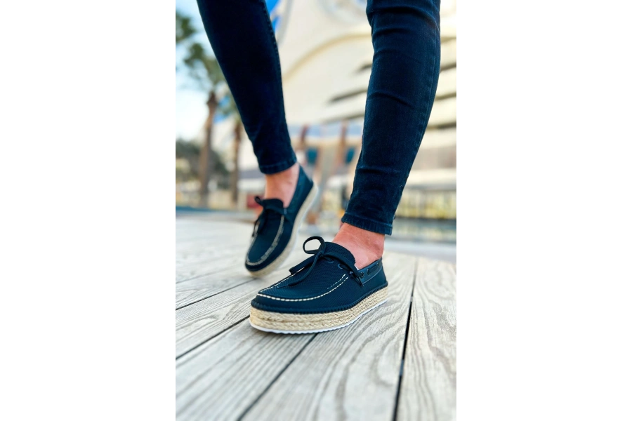 Shoecide Sho311 Bağcıklı Jüt Taban Espadril Erkek Ayakkabı Sıyah