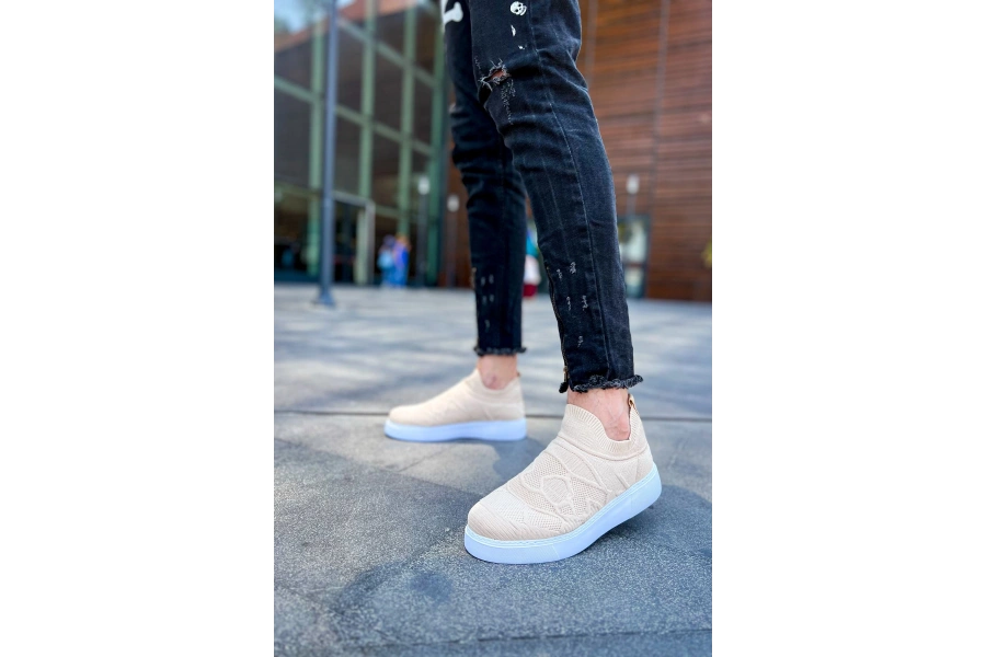Shoecide Sho411 Bağcıksız Yüksek Taban Tbt Craig Erkek Ayakkabı Bej