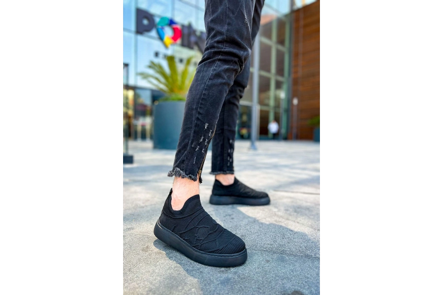 Shoecide Sho411 Bağcıksız Yüksek Taban Tst Craig Erkek Ayakkabı Sıyah