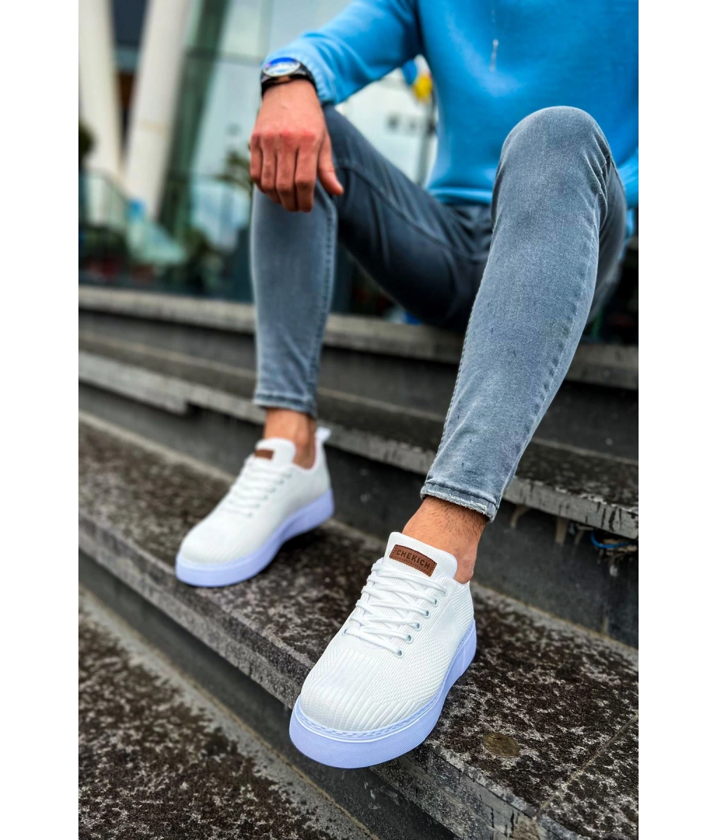 Shoecide Sho413 Bağcıklı Yüksek Taban Tbt Crew Erkek Ayakkabı Beyaz