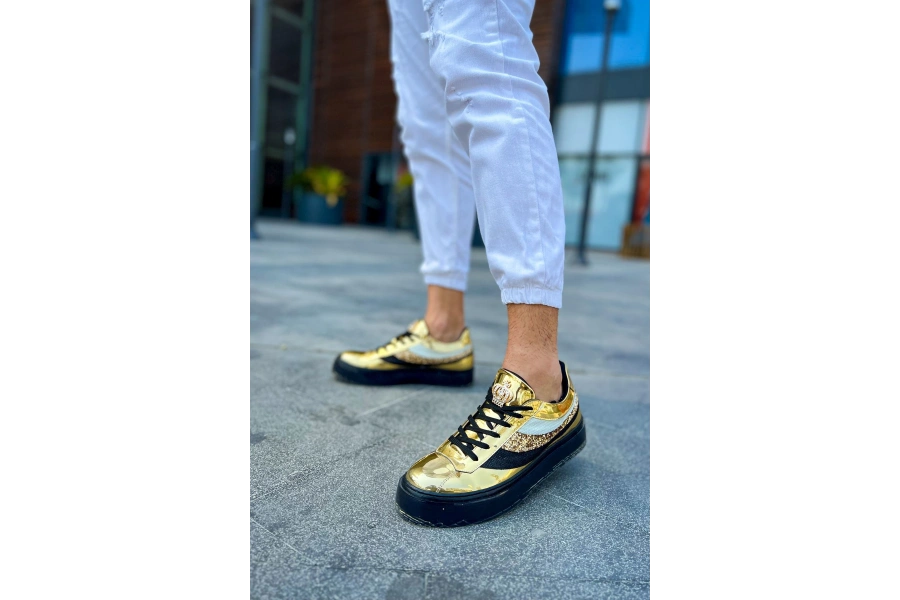 Shoecide Sho975 Bağcıklı Yüksek Taban Majesty St Erkek Ayakkabı Altın