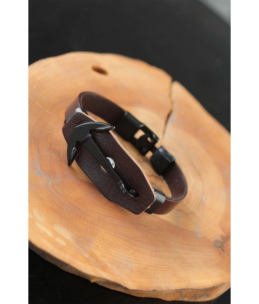 Kombin şıklığınızı Siyah Deniz Çapalı Çelik Aksesuarlı Kahverengi Deri Erkek Bileklik ile yansıtın.