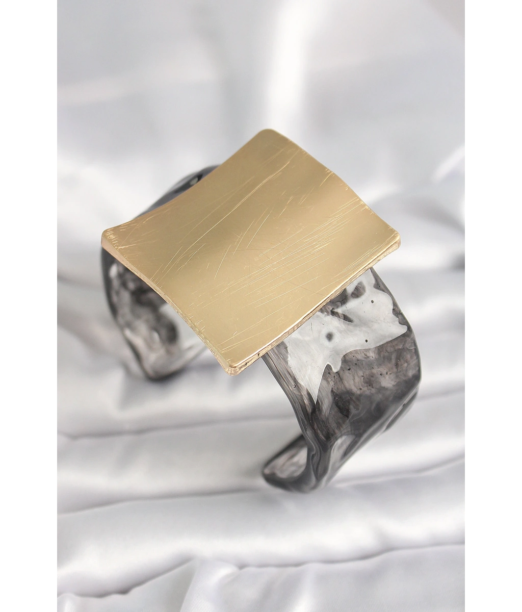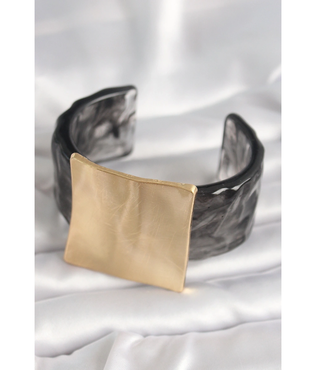 Shoecide Siyah Mermer Desen Akrilik Plastik Gold Kare Plaka Model Vintage Kadın Bilezik