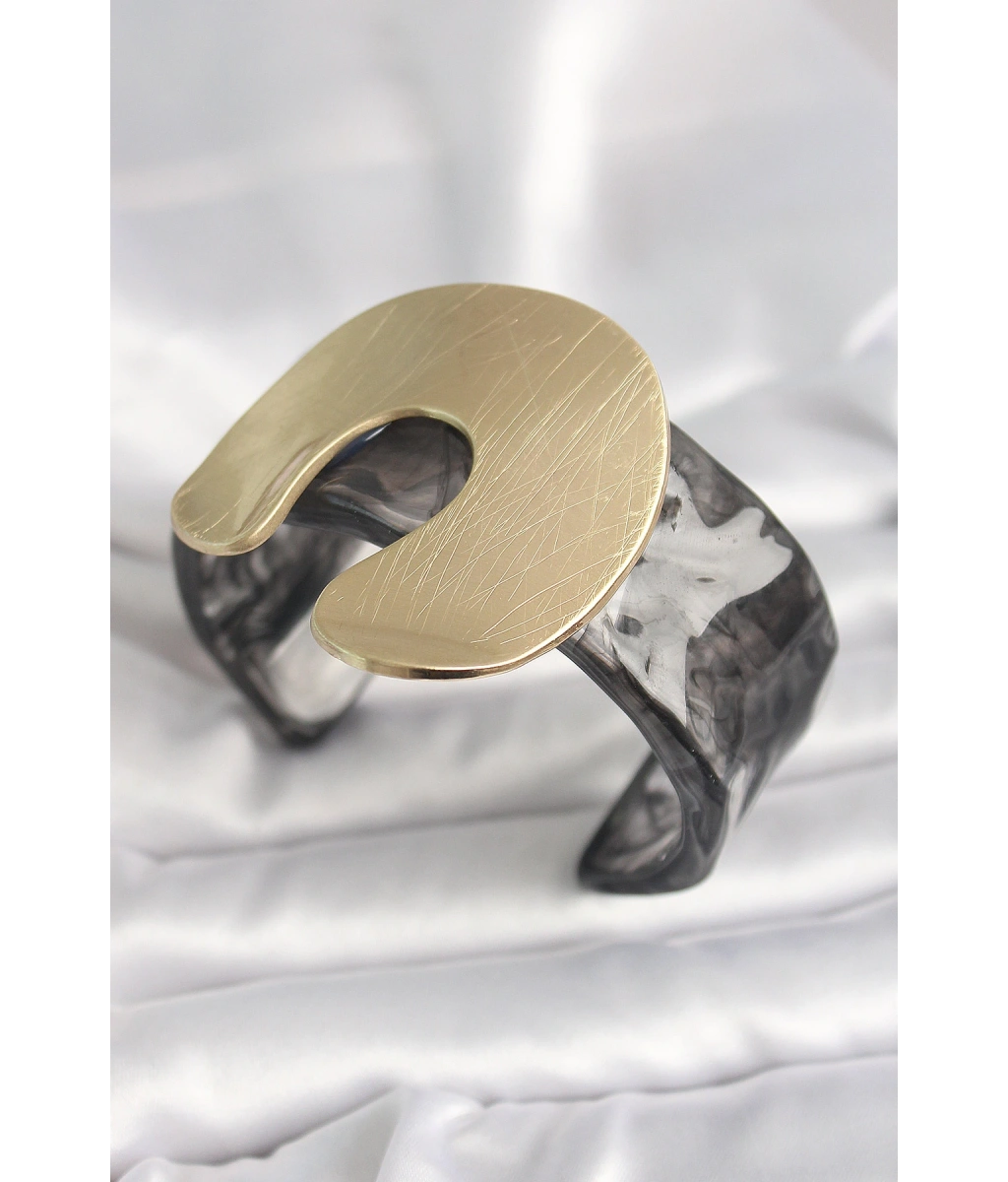 Shoecide Siyah Mermer Desen Akrilik Plastik Gold Nal Model Plaka Vintage Kadın Bilezik