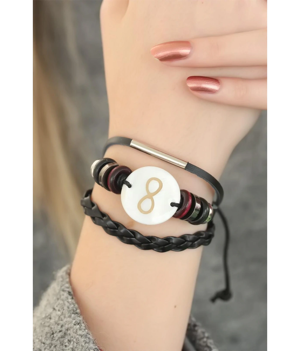Rengi ve duruşu ile dikkat çeken Siyah Renkli Sonsuzluk Tasarım Çoklu Deri Bayan Bileklik modeline sahip olun.