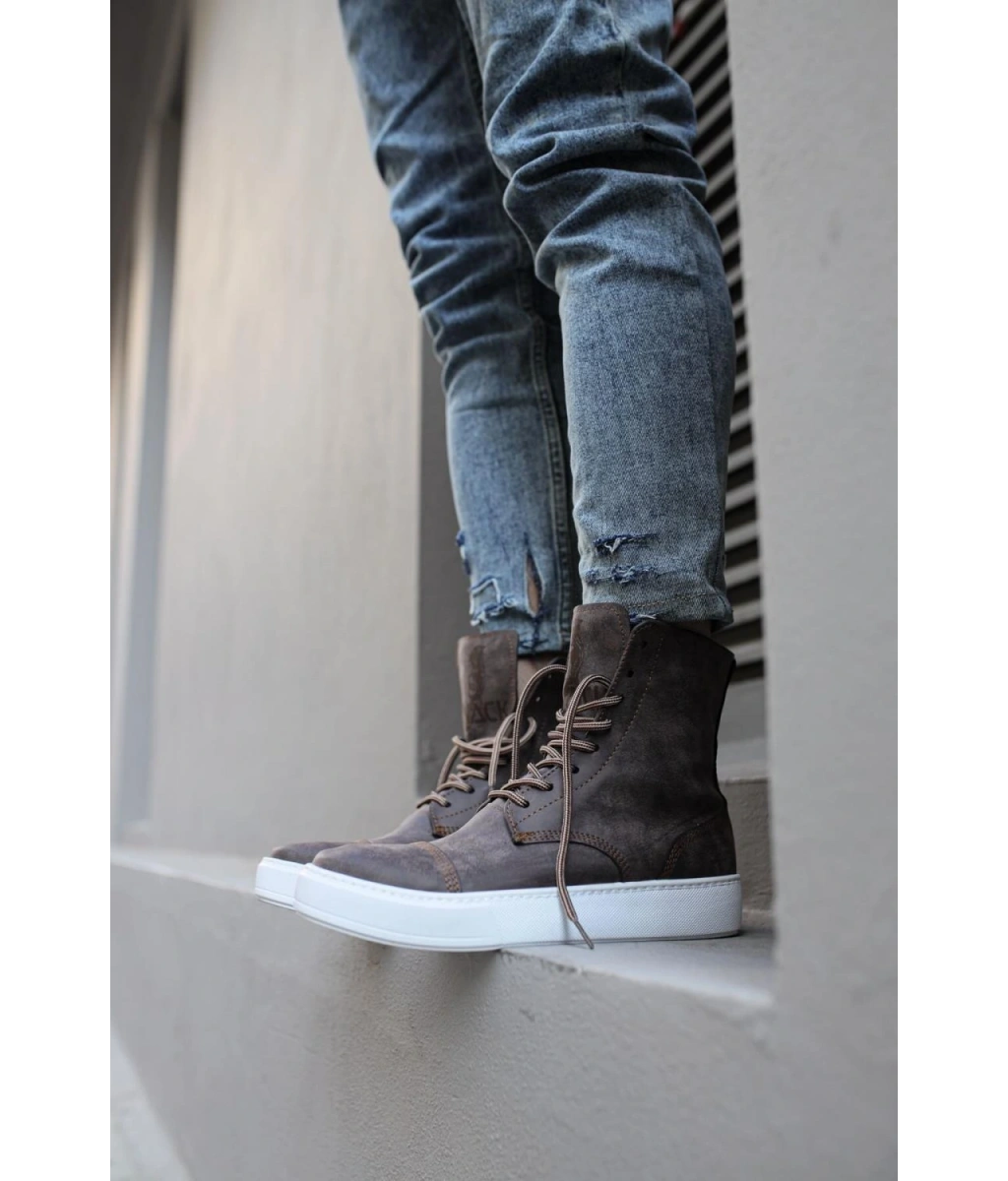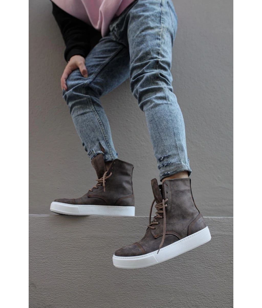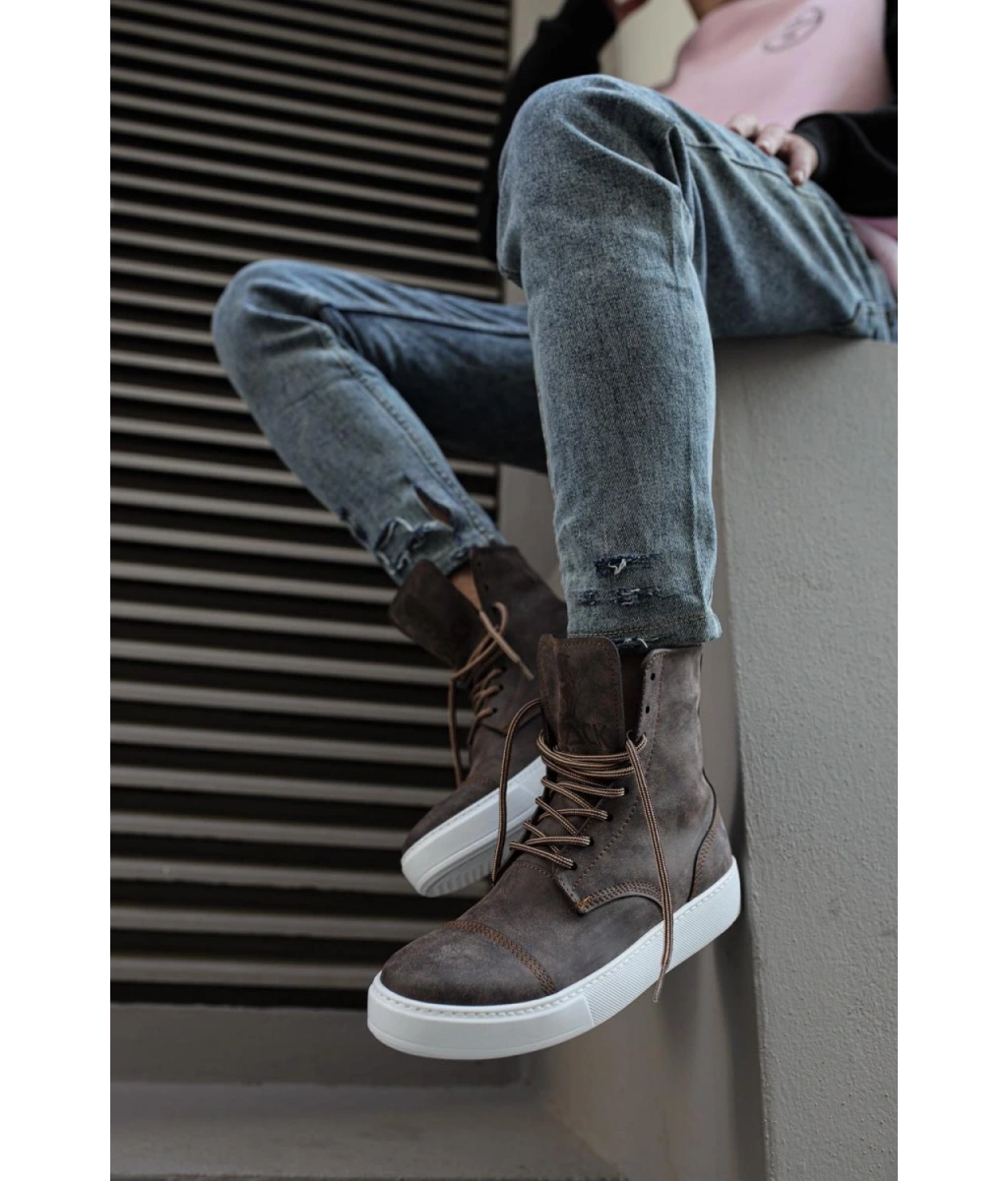 Shoecide Sb0713 Bağcıklı Yüksek Taba Süet Siyah Taban Erkek Tarz Spor Bot