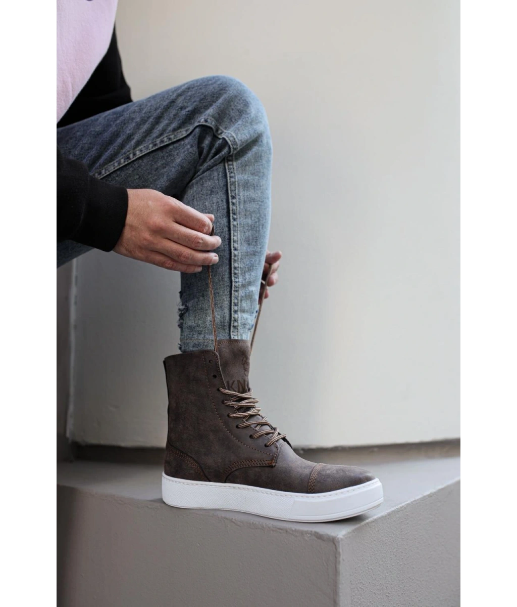 Shoecide Sb0713 Bağcıklı Süet Bej Yüksek Taban Erkek Tarz Spor Bot