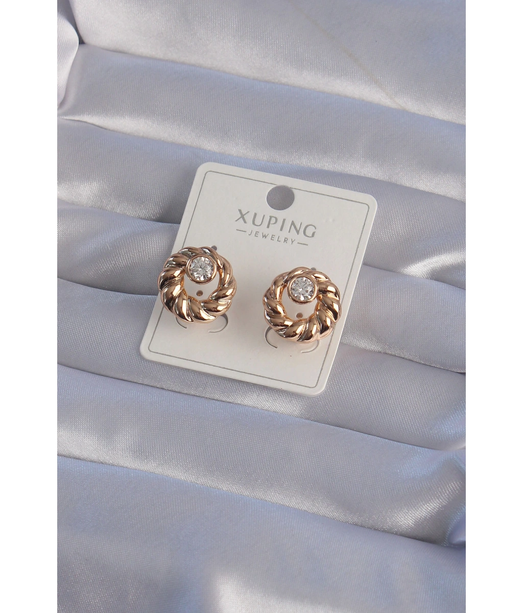 Shoecide Xuping Rose Renk Oval Zirkon Taşlı Burgu Model Küpe