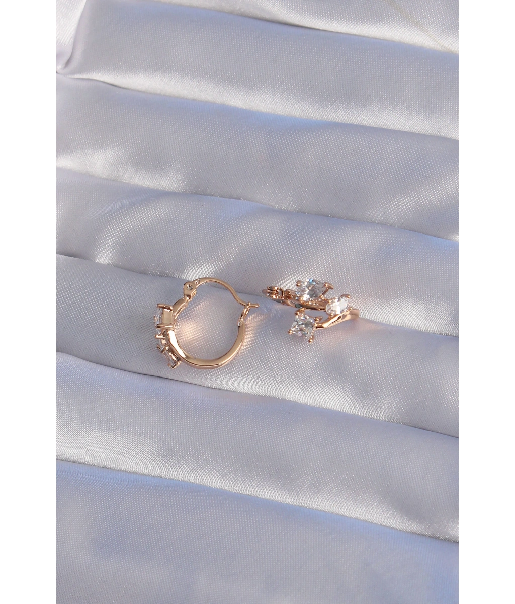 Shoecide Xuping Rose Renk Zirkon Taşlı Halka Küpe
