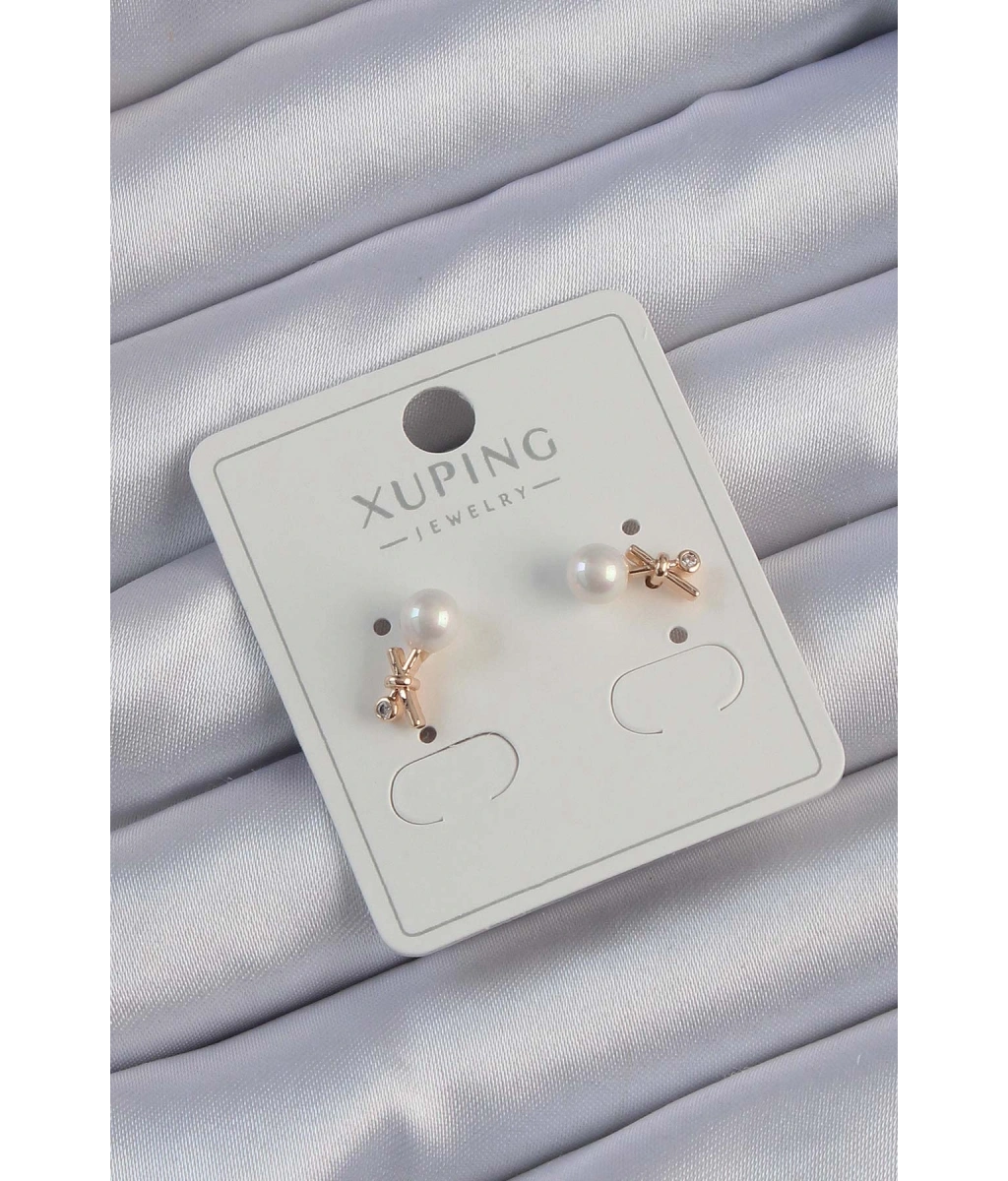 Shoecide Xuping Rose Renk Zirkon Taşlı İncili Minimal Fiyonk Küpe