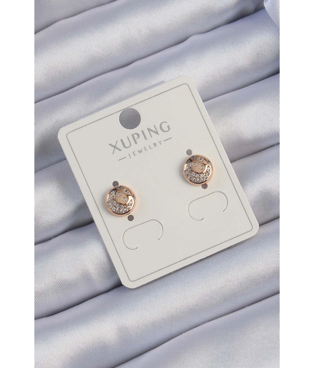 Shoecide Xuping Rose Renk Zirkon Taşlı Yansımalı Oval Küpe