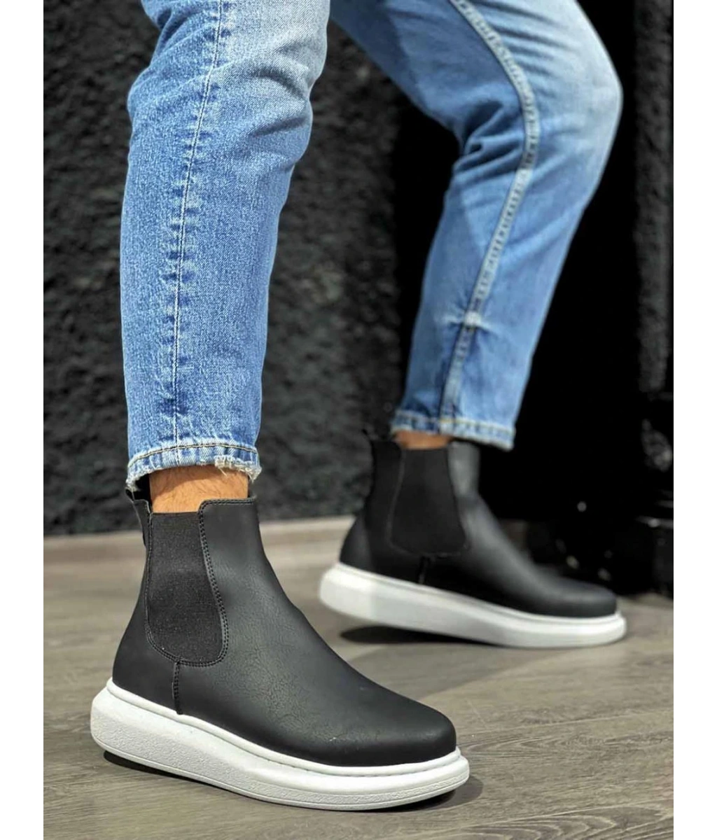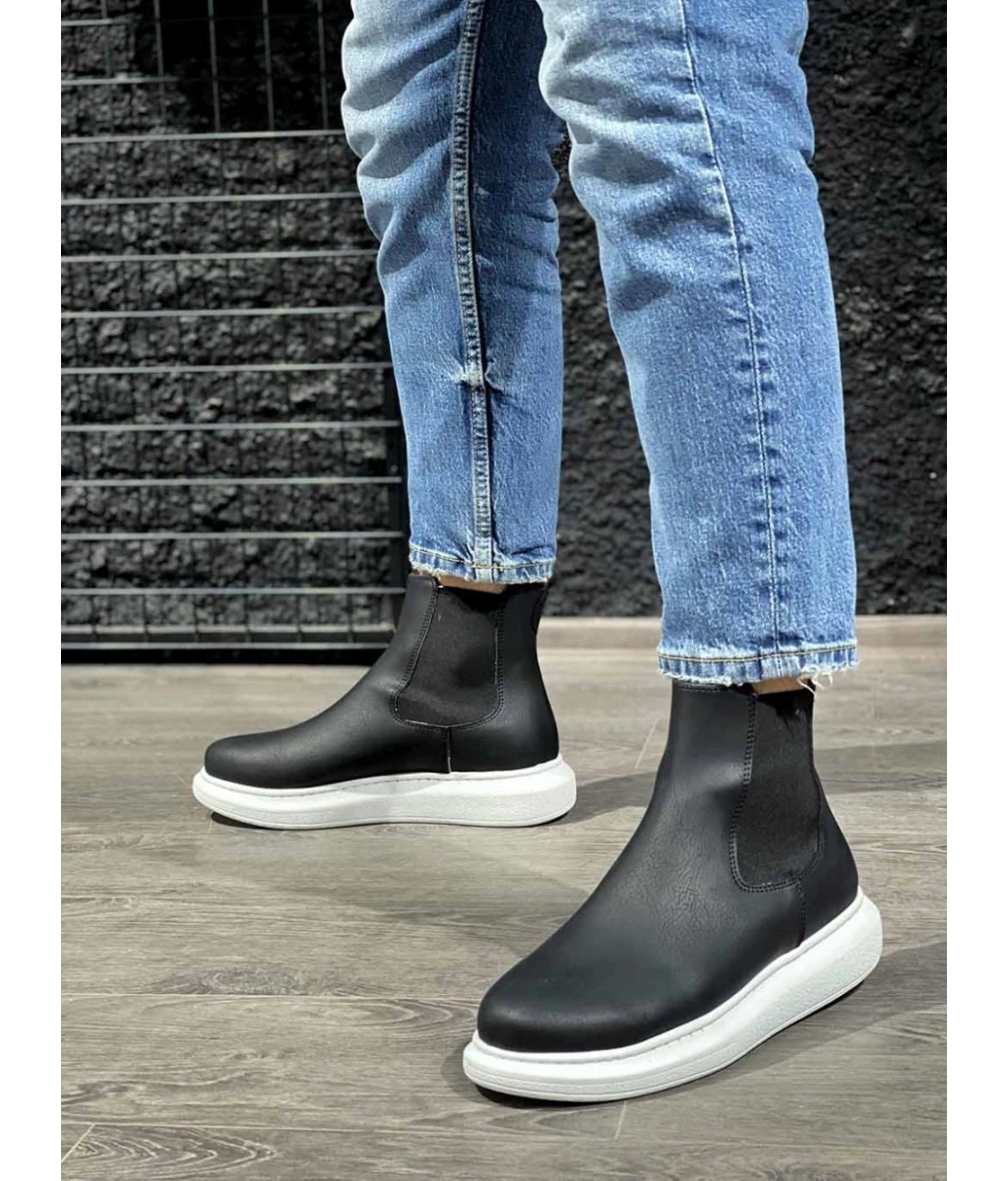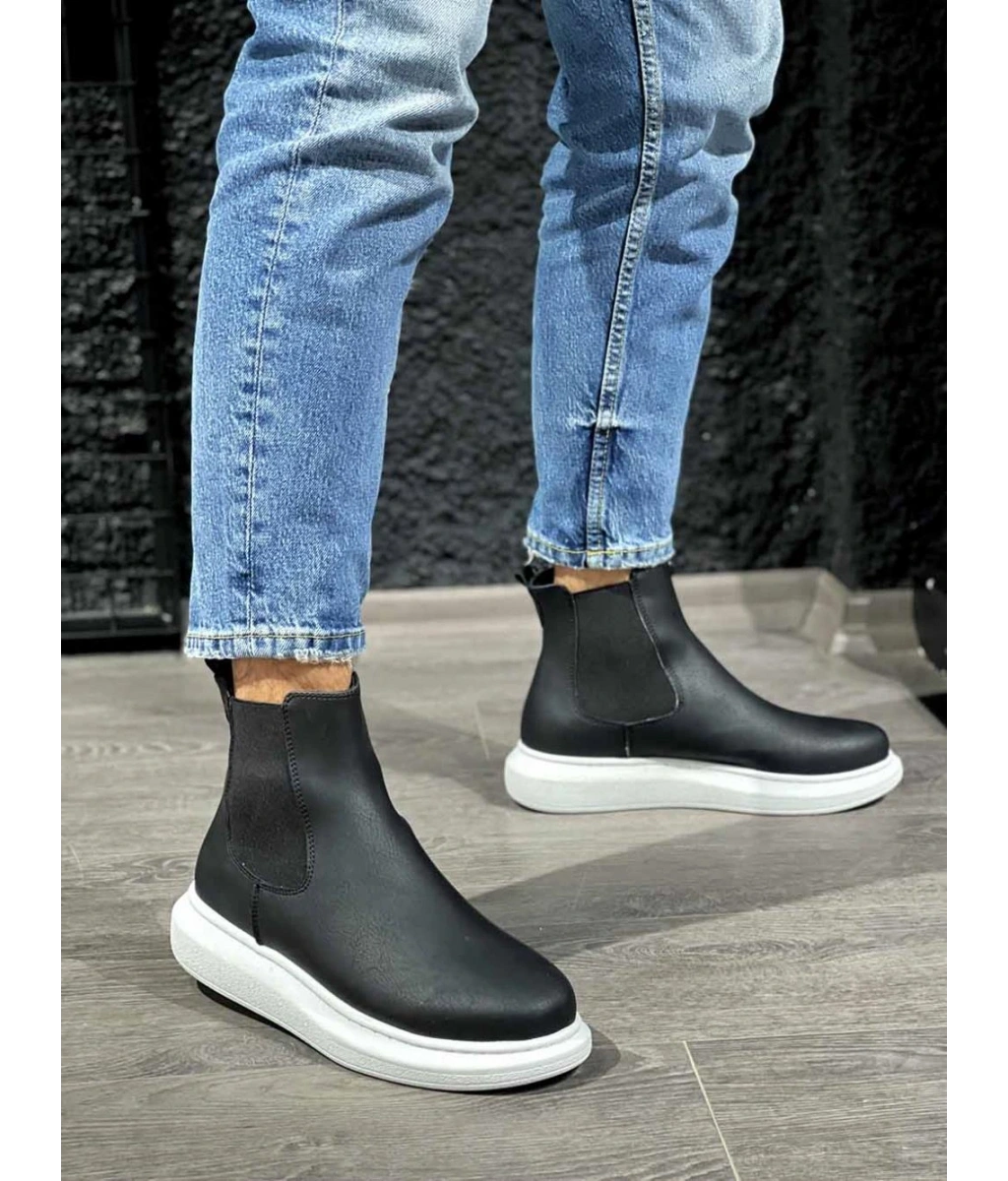 Shoecide Sb0401 Bağcıksız Rahat Yüksek Taban Siyah Erkek Spor Yarım Bilek Bot
