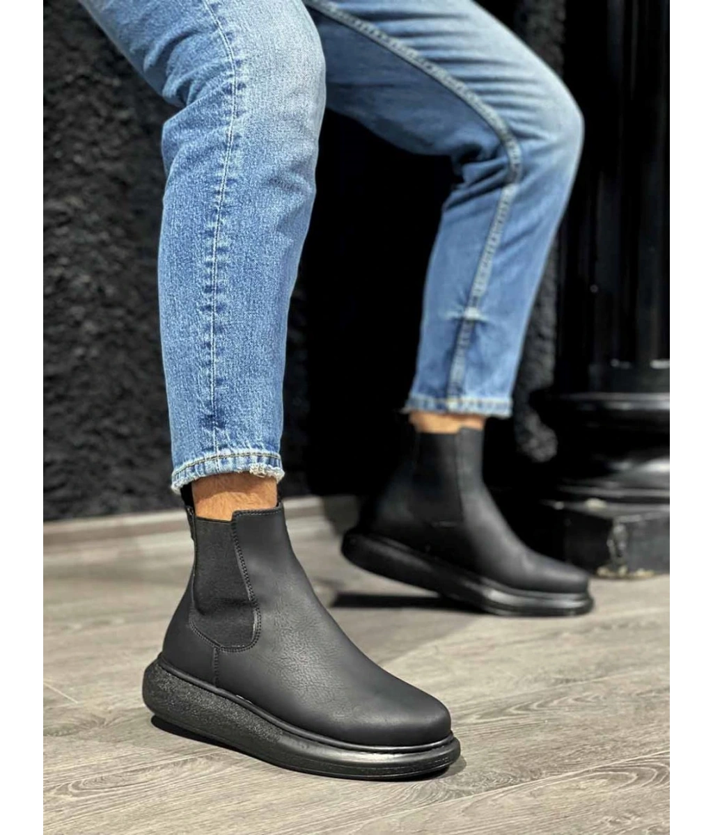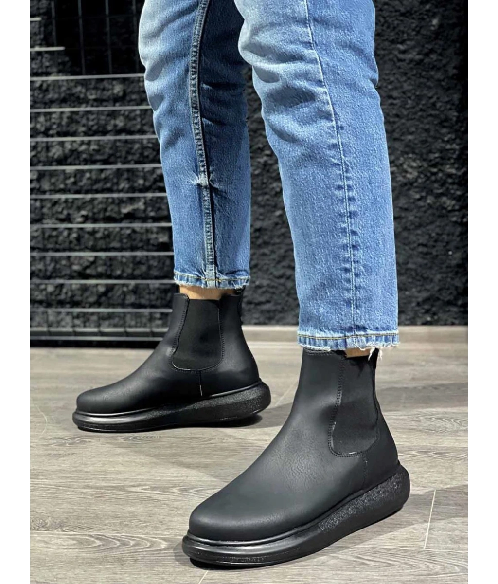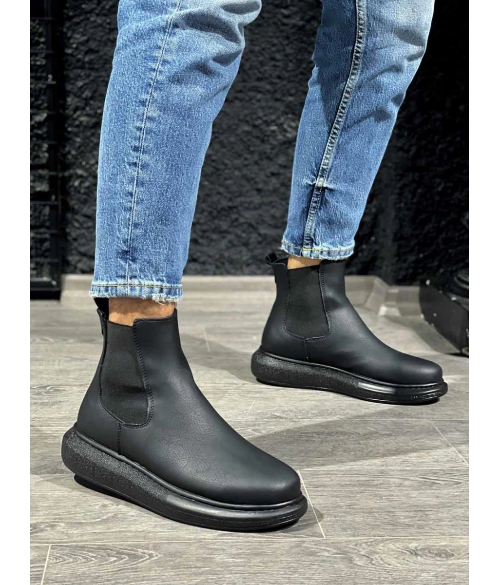 Shoecide Sb0401 Bağcıksız Rahat Yüksek Taban Siyah Erkek Spor Yarım Bilek Bot