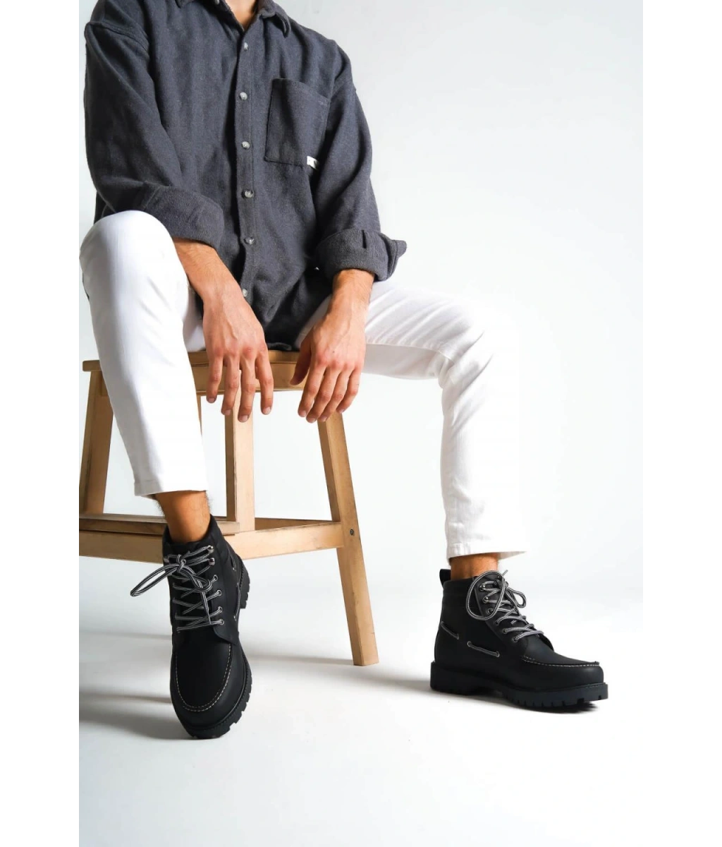 Shoecide Sb0713 Bağcıklı Yüksek Siyah Taban Erkek Tarz Spor Bot