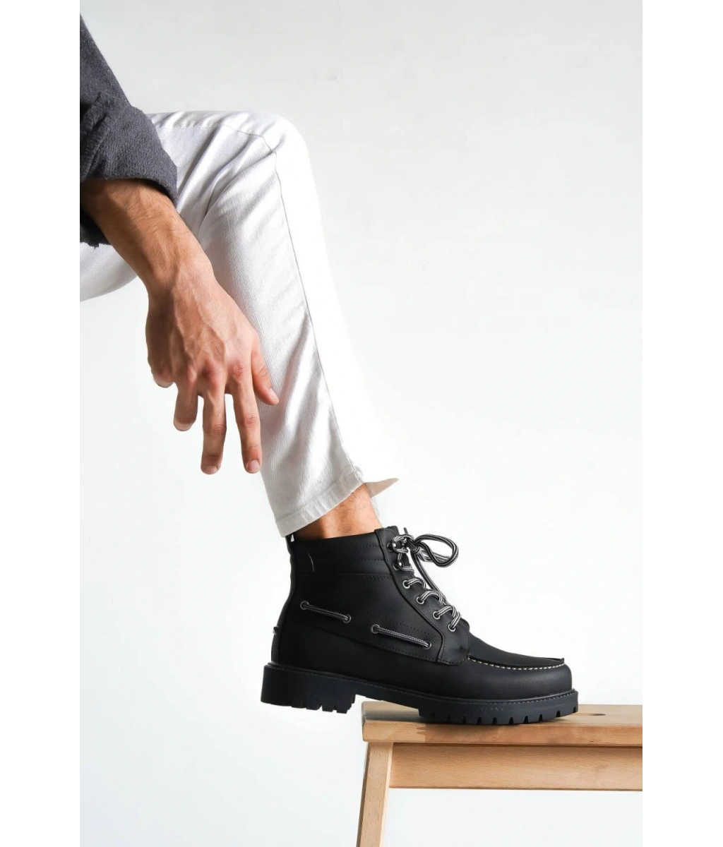 Shoecide Le10 Bağcıklı Erkek Yüksek Siyah Taban Siyah Spor Bot