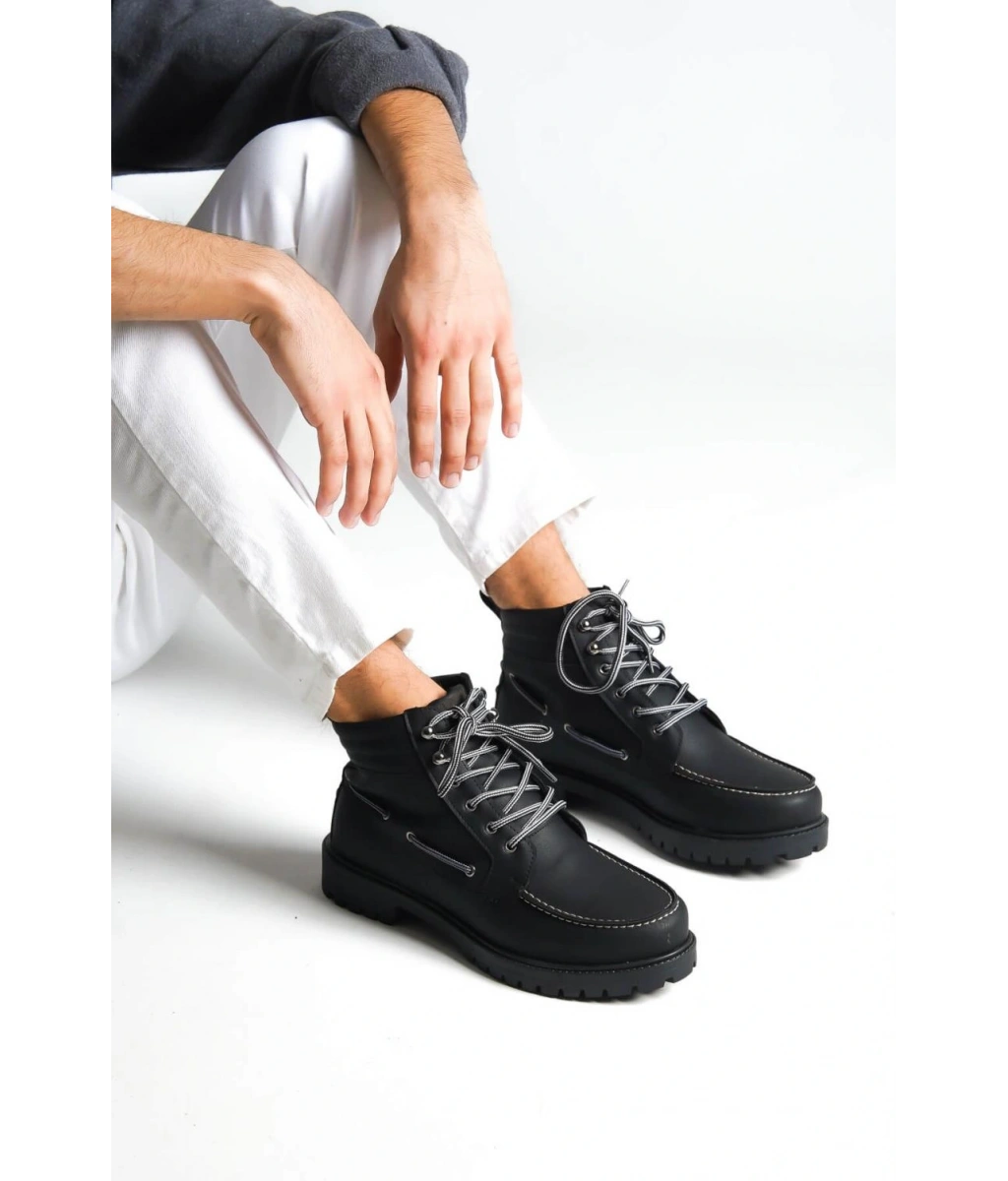 Shoecide Sb0550 İçi Kürklü Bağcıklı Siyah Erkek Tarz Spor Bot