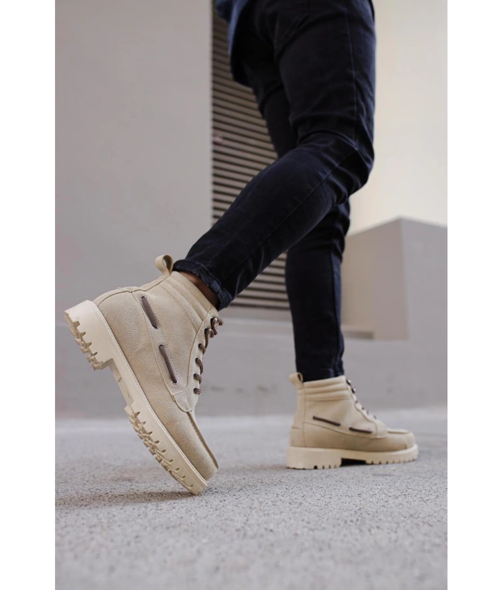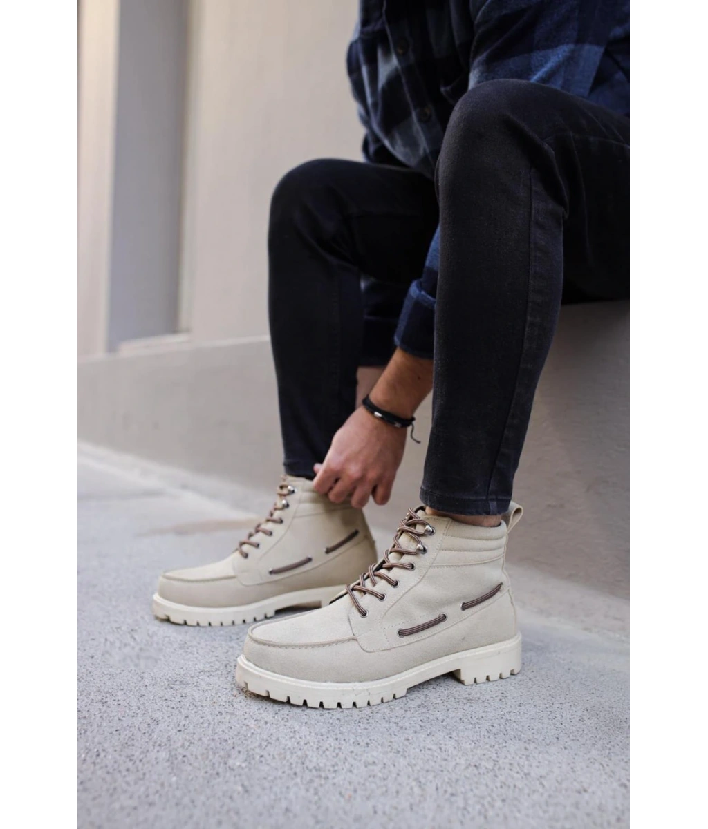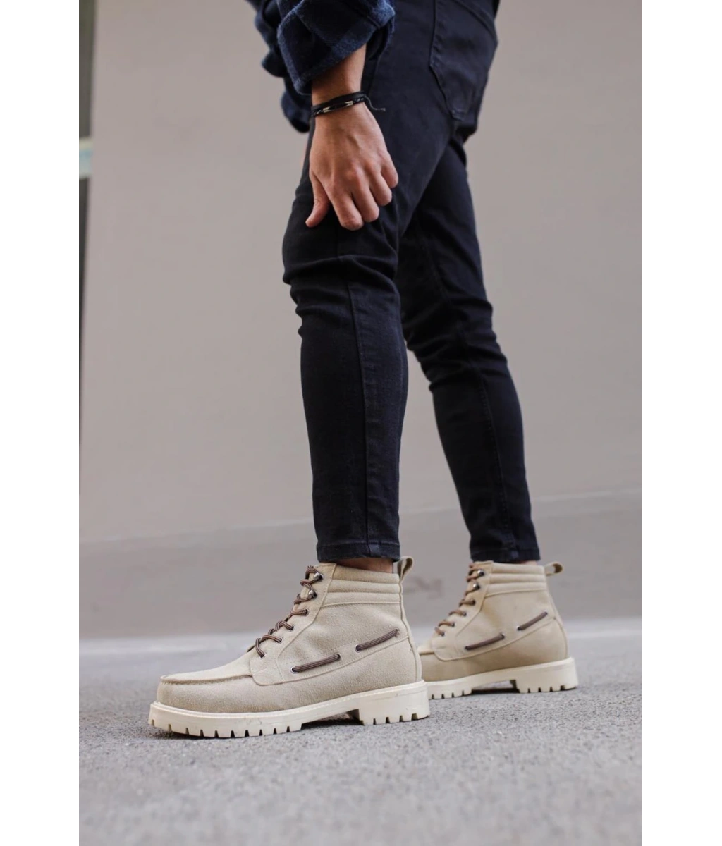 Shoecide Sb0401 Bağcıksız Rahat Yüksek Taban Krem Erkek Spor Yarım Bilek Bot