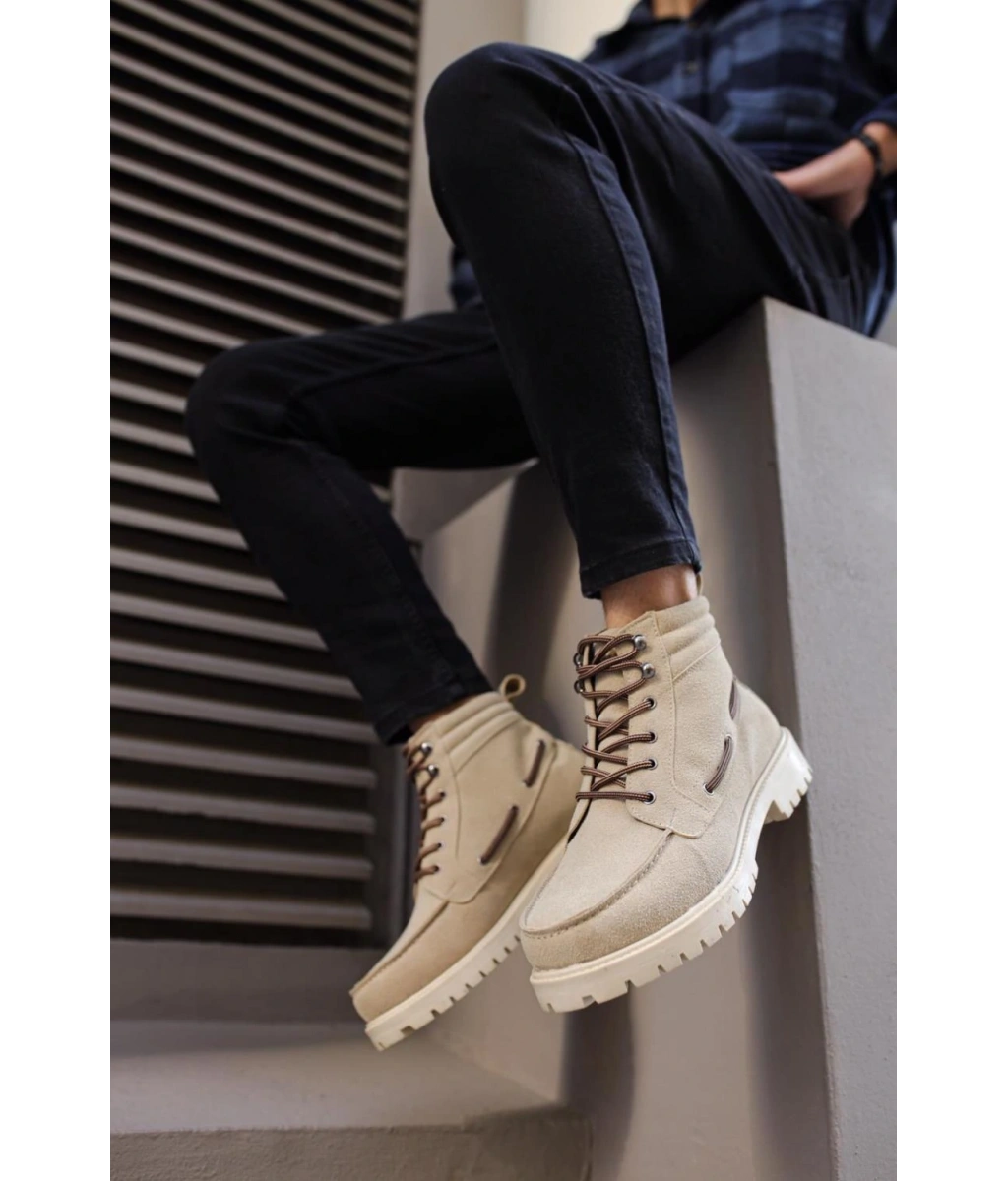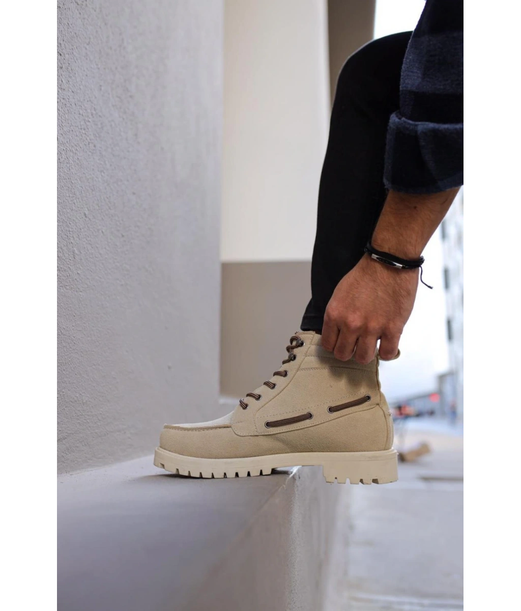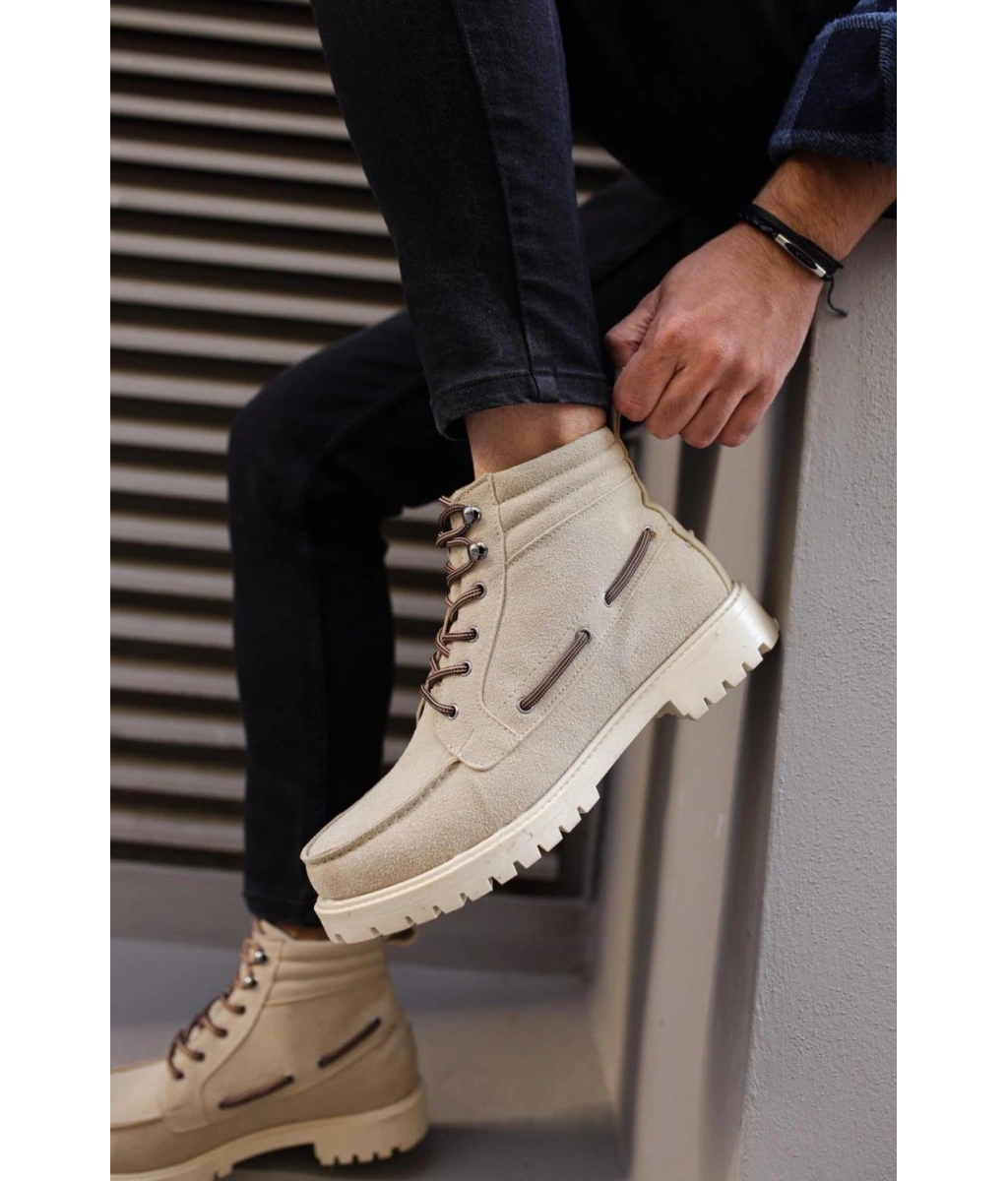 Shoecide Sb0401 Bağcıksız Rahat Yüksek Taban Krem Erkek Spor Yarım Bilek Bot