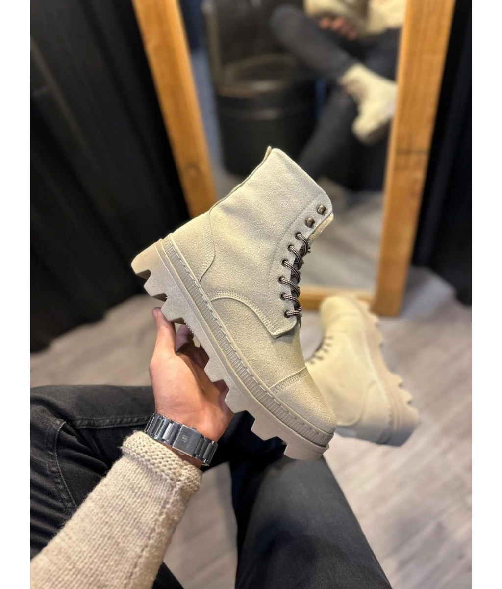Shoecide Sb0713 Bağcıklı Süet Bej Yüksek Taban Erkek Tarz Spor Bot