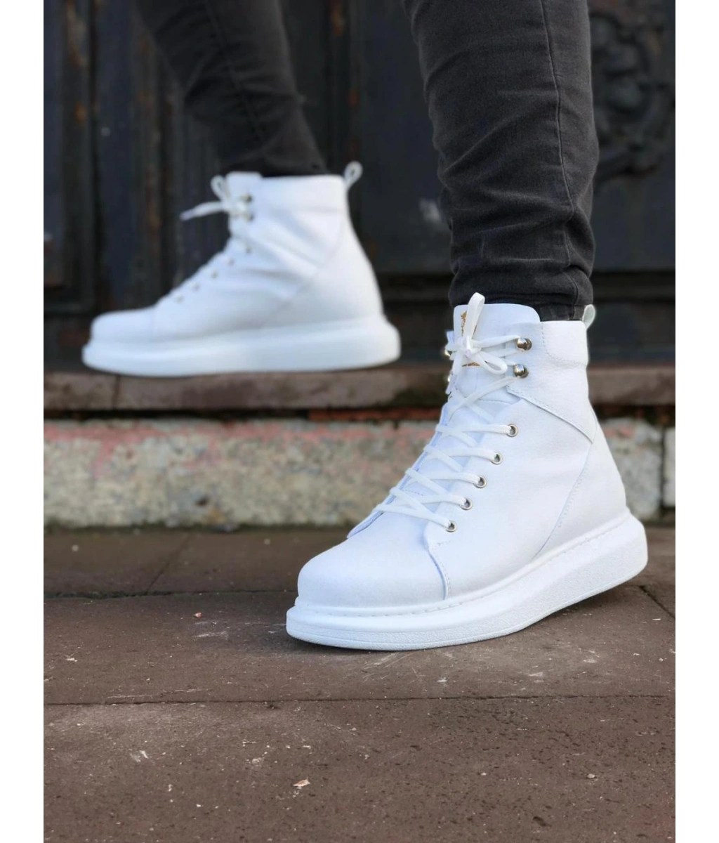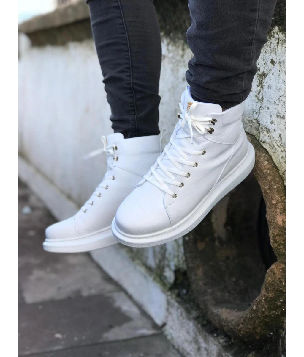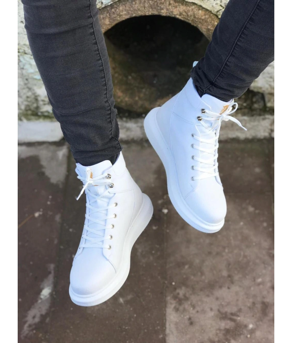 Shoecide Wg032 Beyaz Bağcıklı Sneakers Yarım Bilek Bot