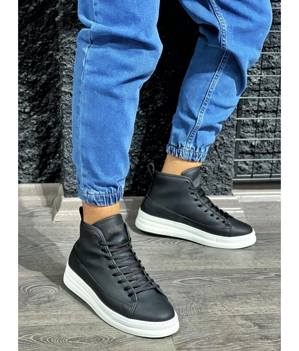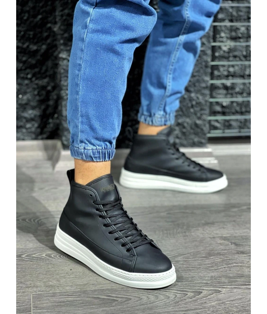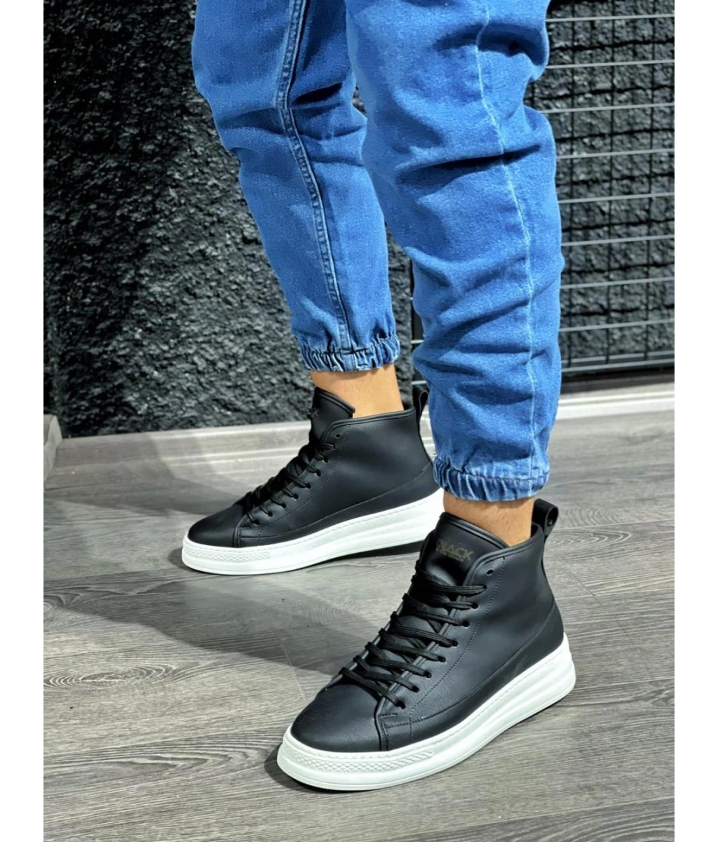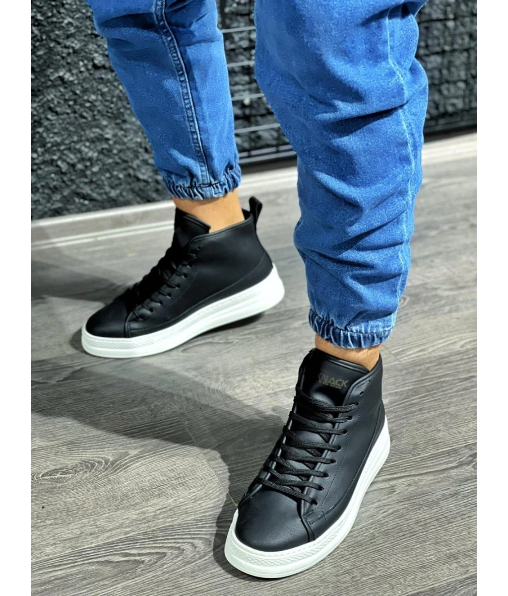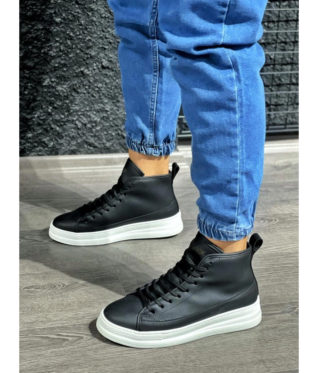 Shoecide Sb0713 Bağcıklı Yüksek Siyah Beyaz Taban Erkek Tarz Spor Bot