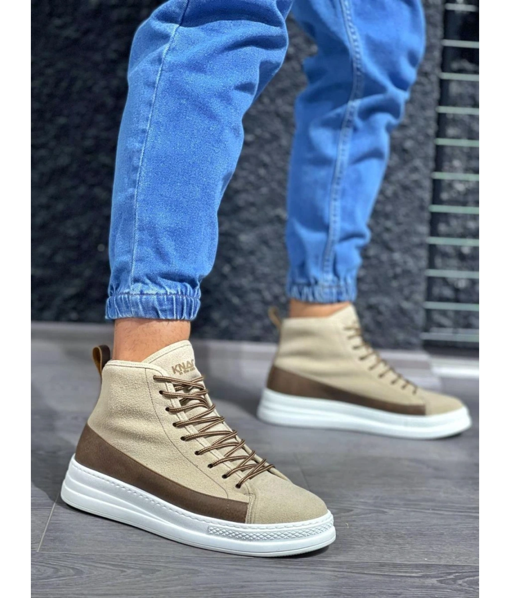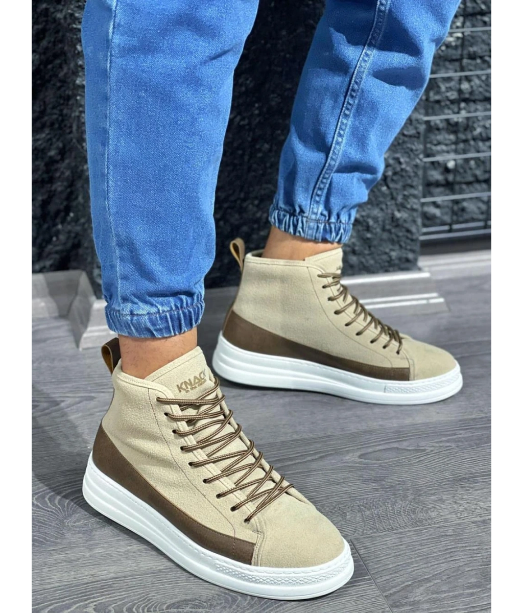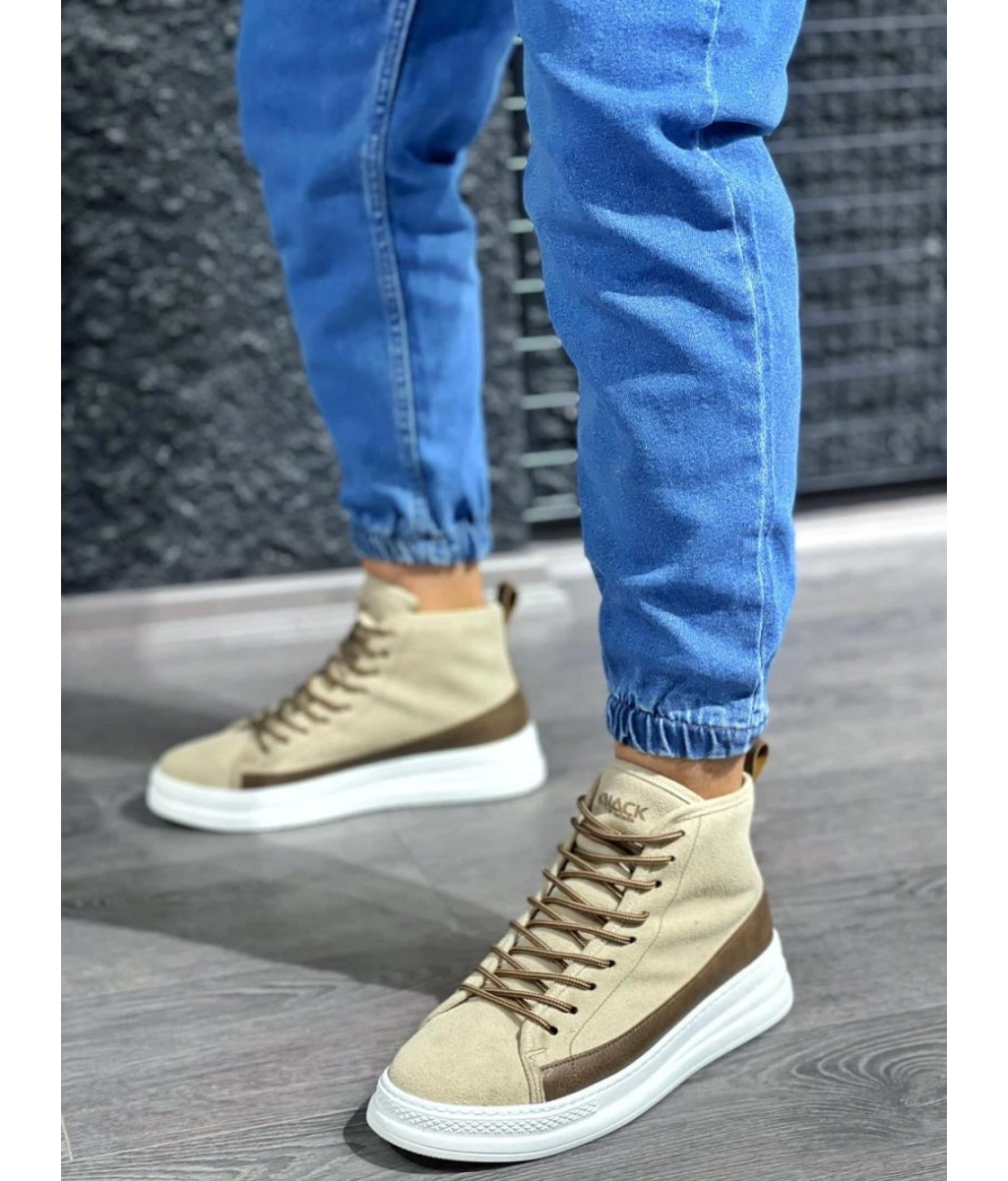 Shoecide Sb0401 Bağcıksız Rahat Yüksek Taban Krem Erkek Spor Yarım Bilek Bot