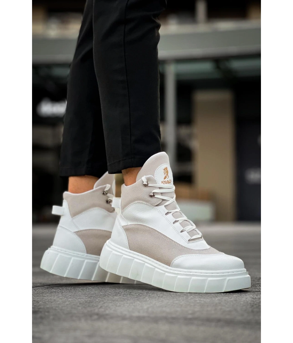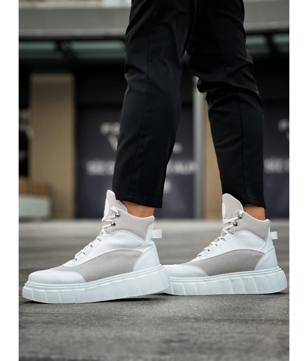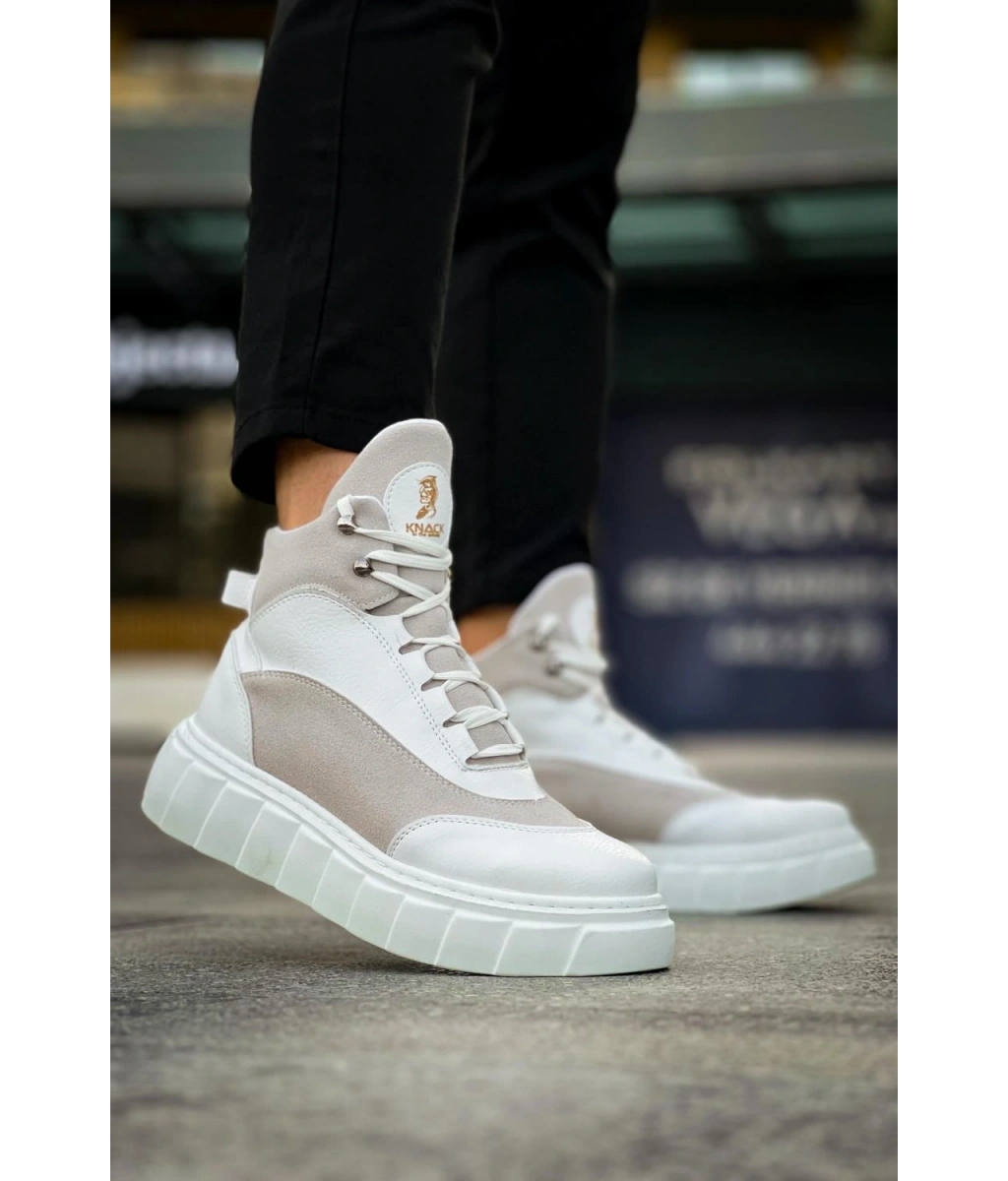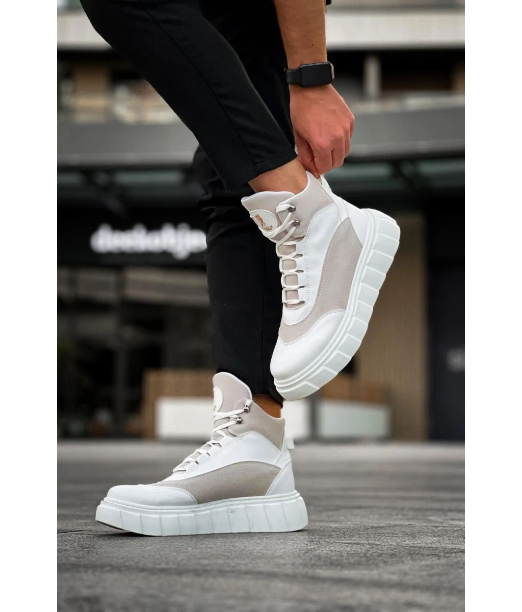 Shoecide Sb0713 Bağcıklı Beyaz Yüksek Taban Erkek Tarz Spor Bot