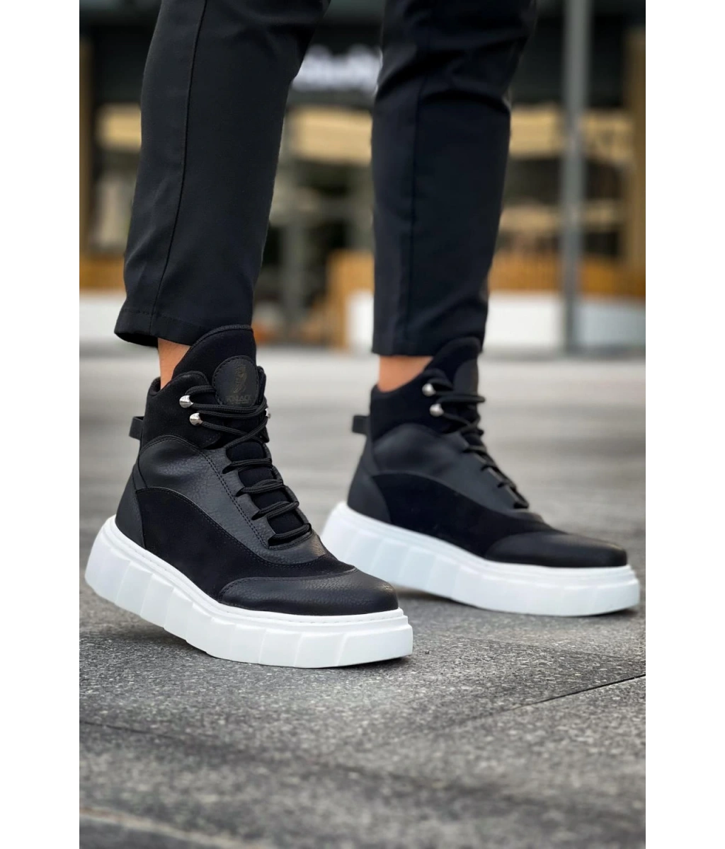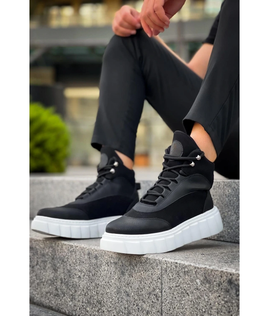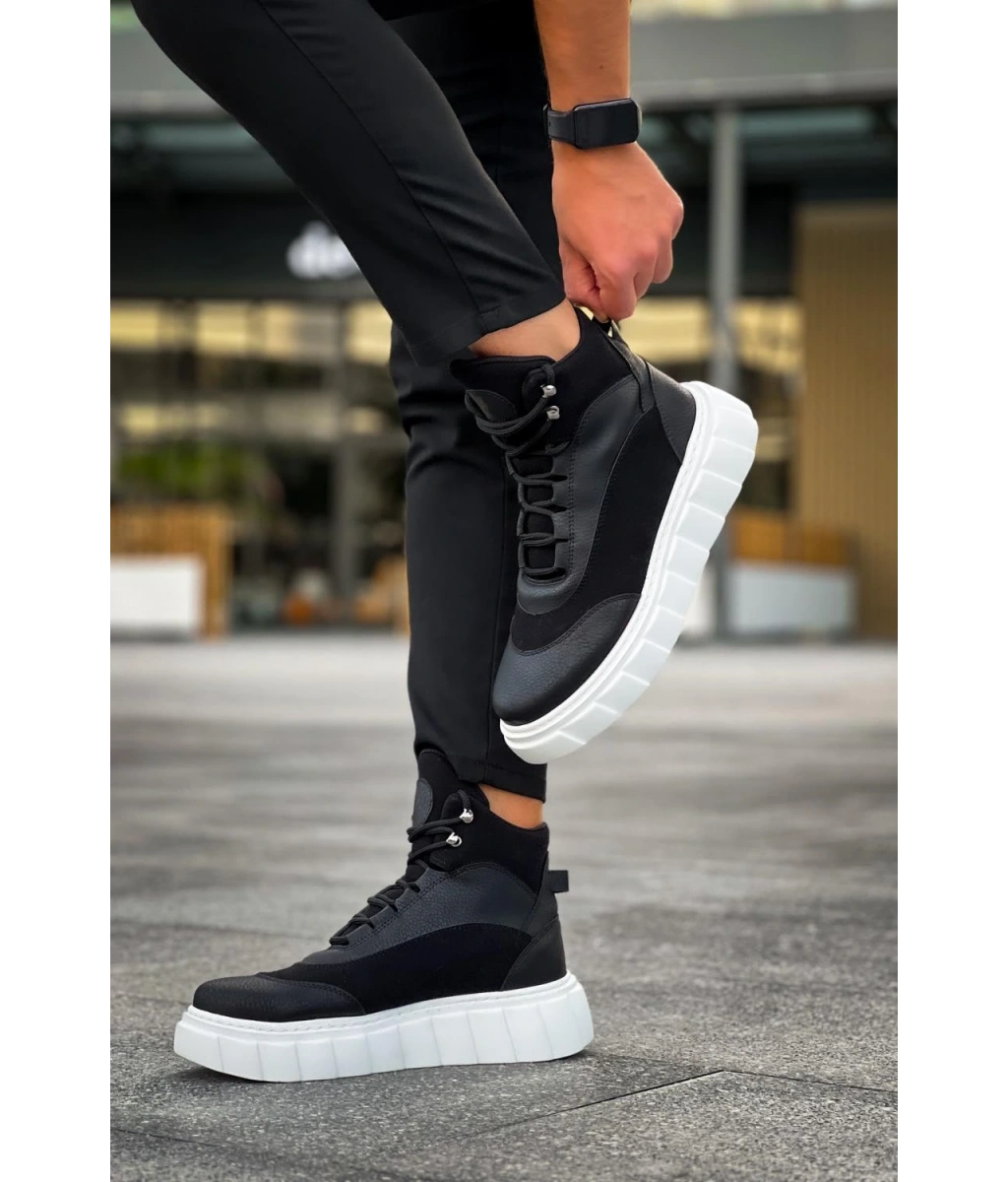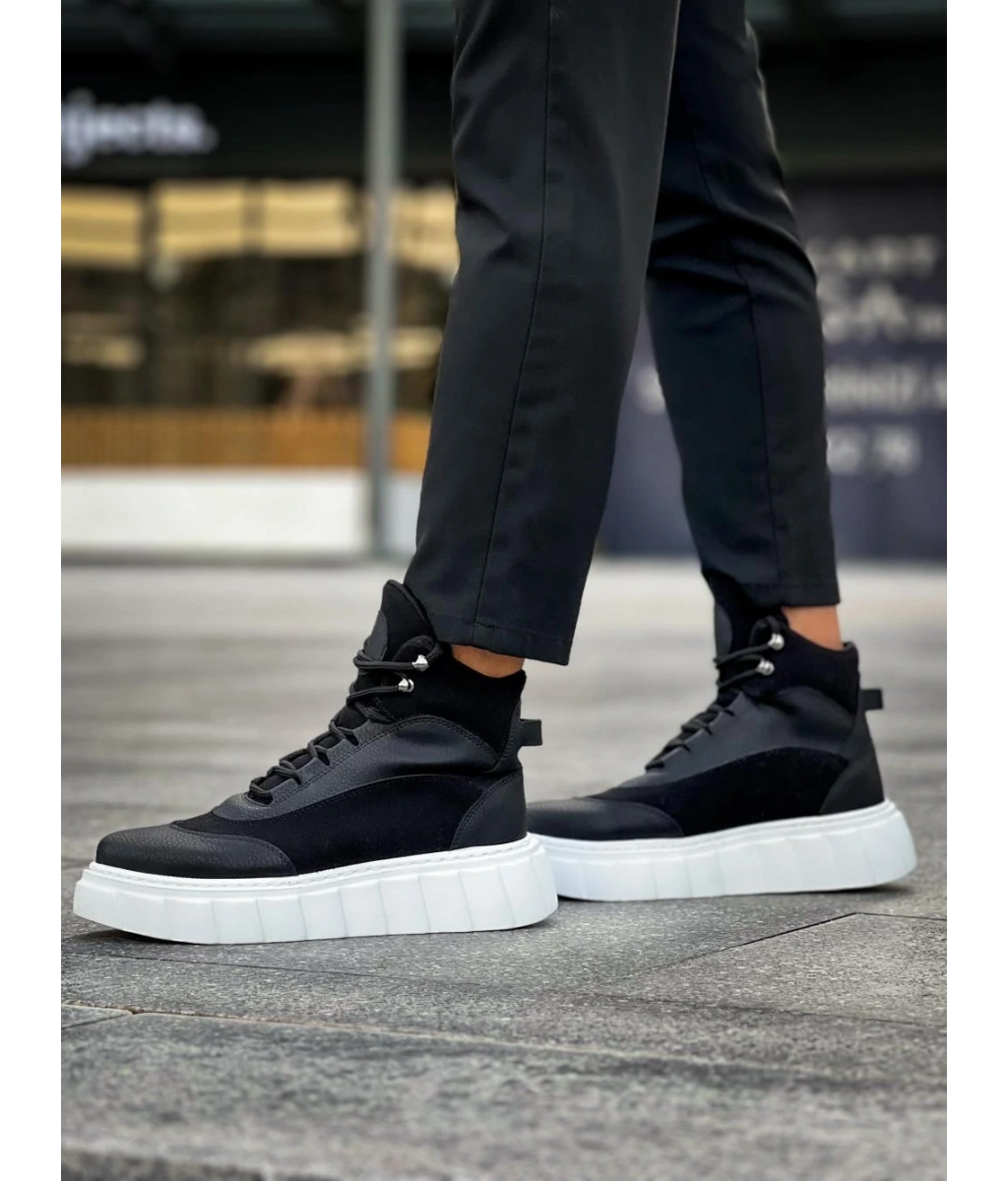 Shoecide Sb0713 Bağcıklı Yüksek Siyah Beyaz Taban Erkek Tarz Spor Bot