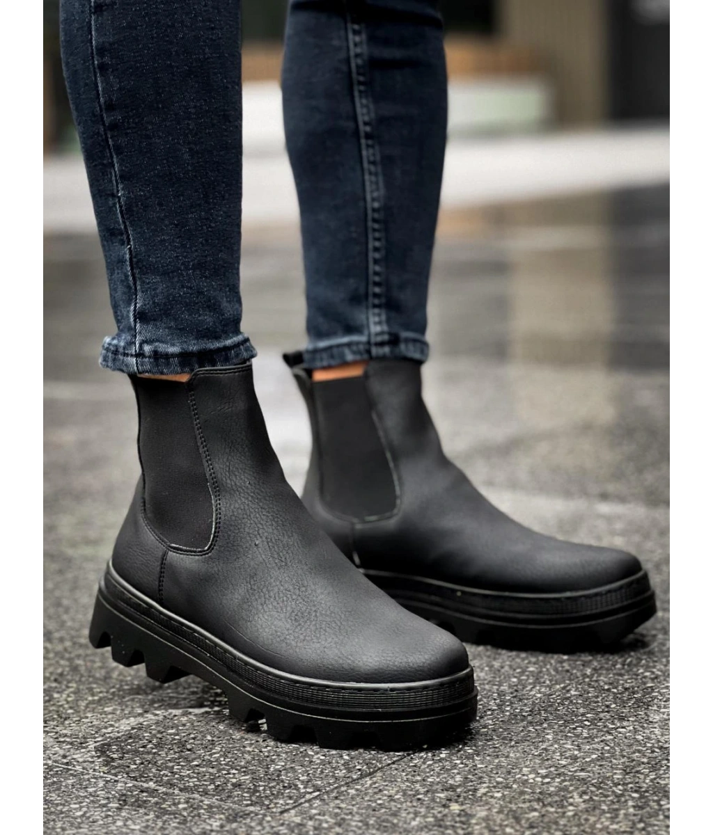 Shoecide Yüksek Taban Chelsea Bot 113 Siyah (siyah Taban)