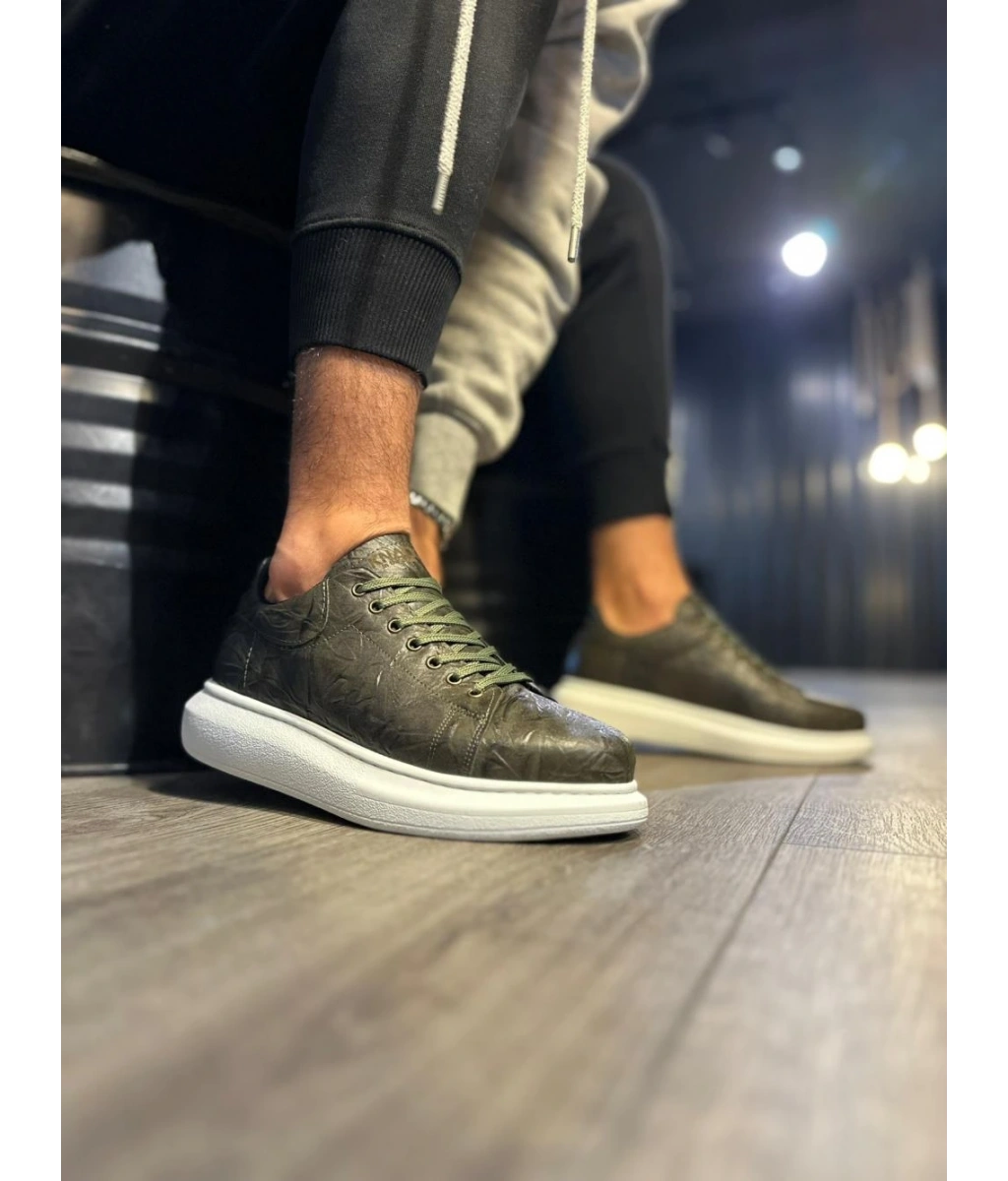 Shoecide Yüksek Taban Günlük Ayakkabı 044 Haki (desenli)