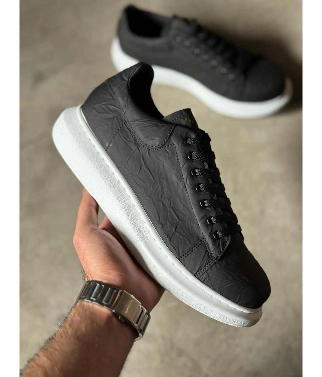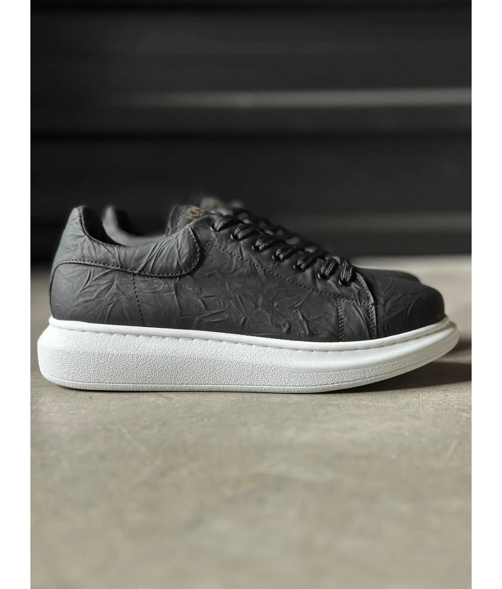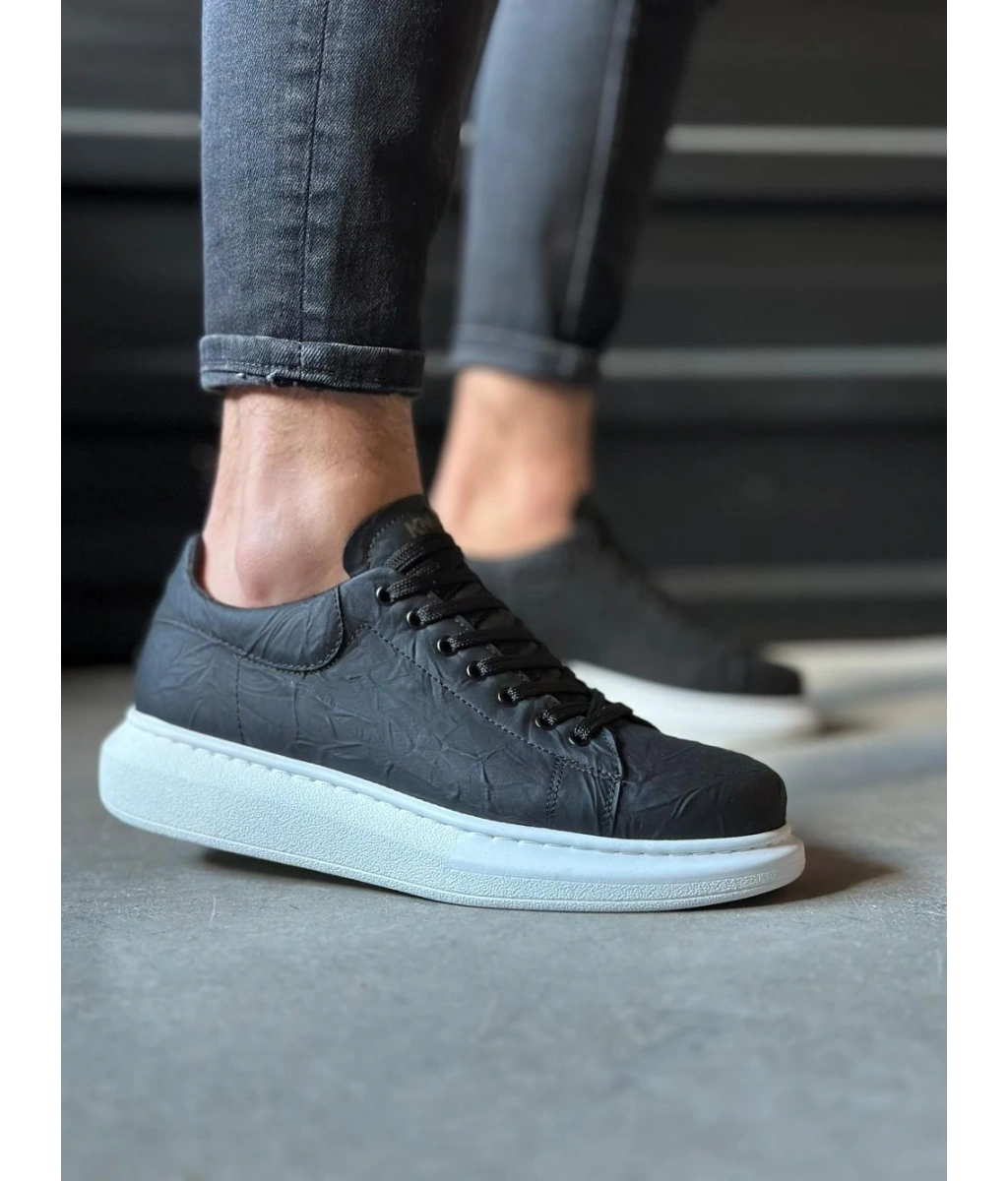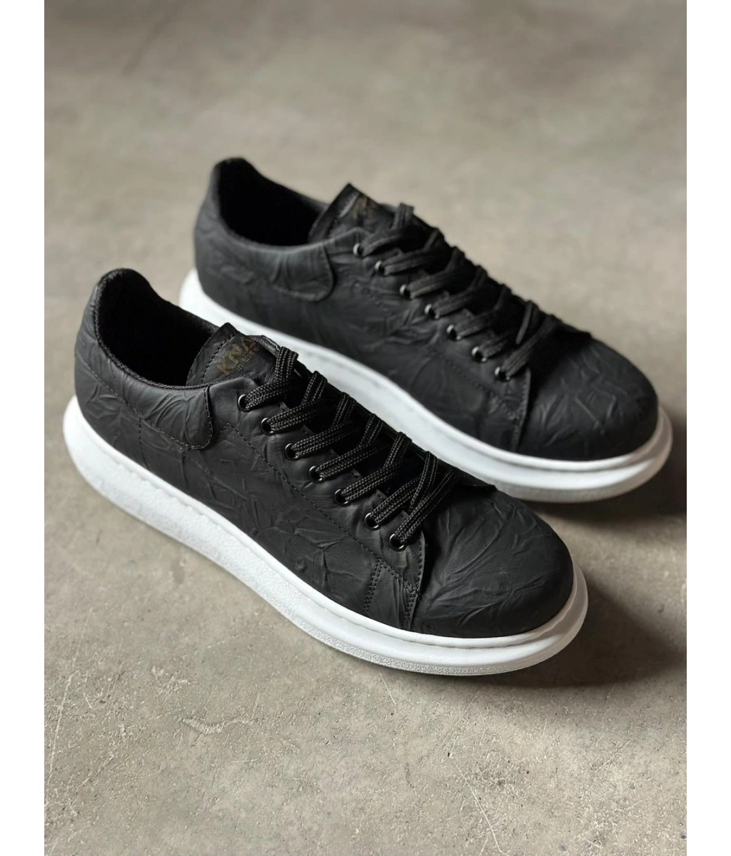 Shoecide Yüksek Taban Günlük Ayakkabı 044 Siyah Beyaz Taban (desenli)