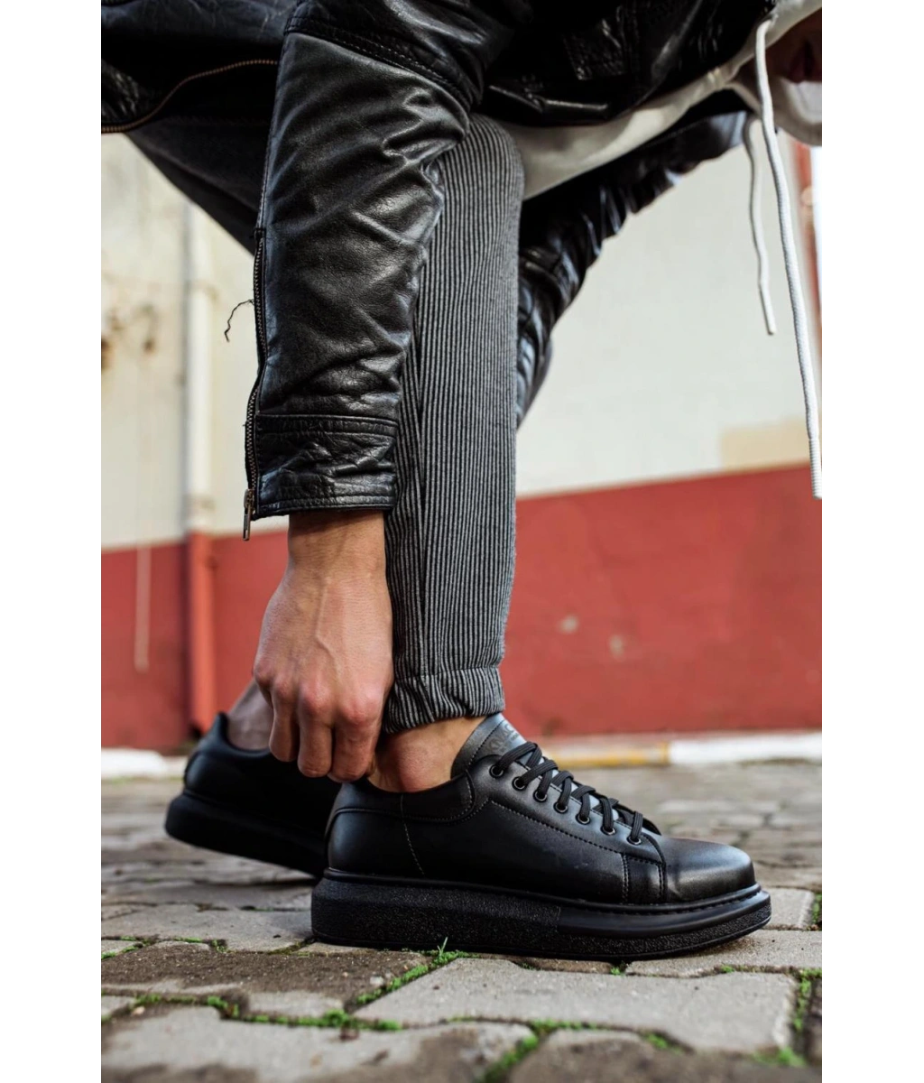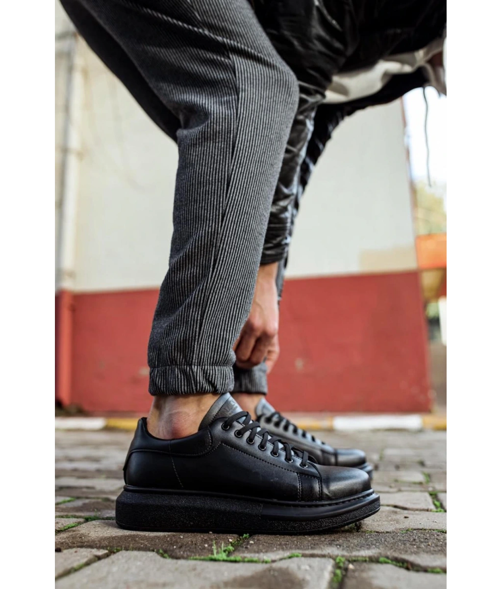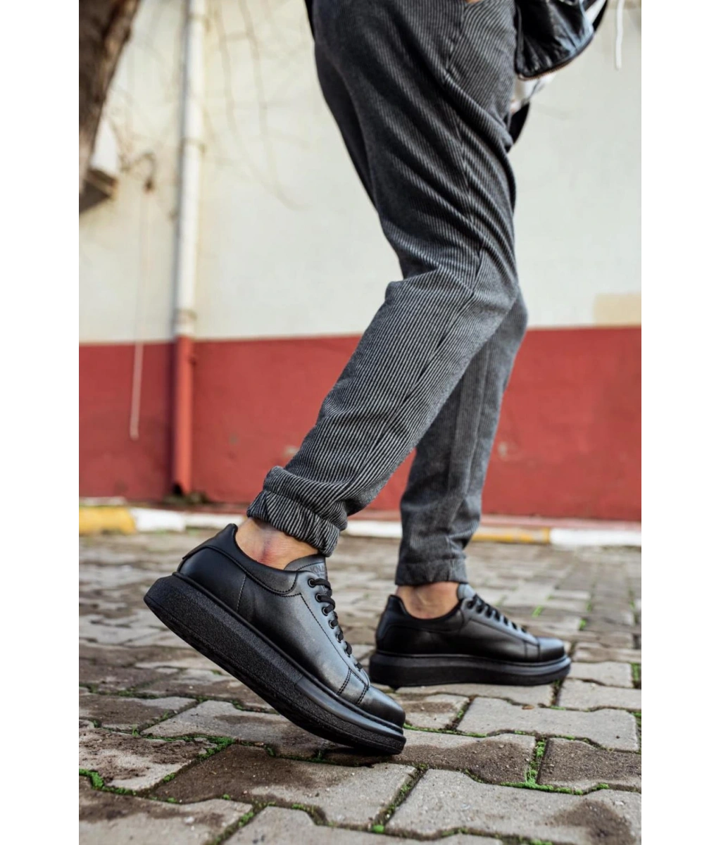 Shoecide Yüksek Taban Günlük Ayakkabı 044 Siyah (siyah Taban)